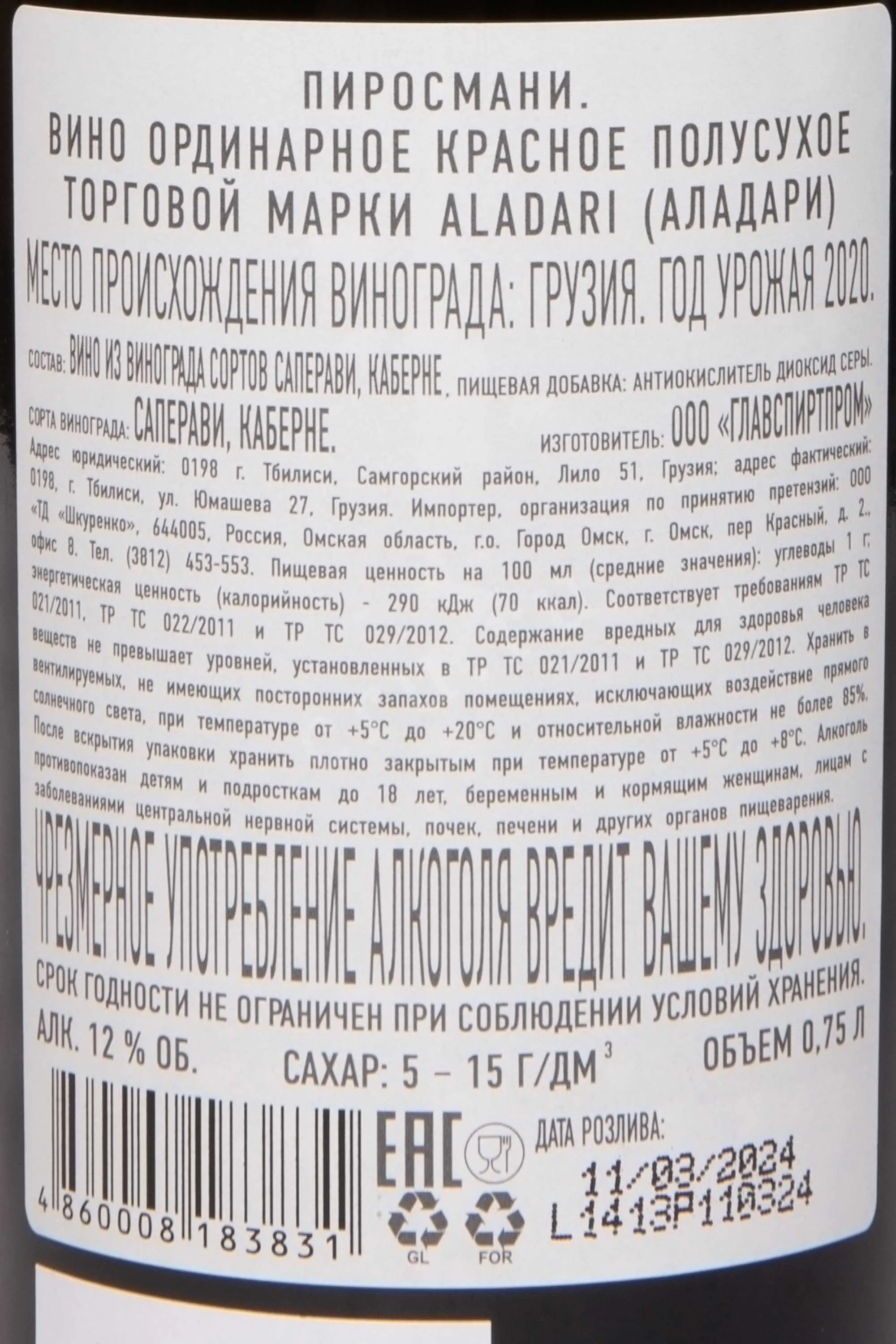 Aladari GSP Pirosmani Red 2020 0.75 л купить - Грузинское вино Аладари ГСП Пирасмани Красное цена в магазинег. Москва, ул. Профсоюзная, д. 16/1010:00-22:00 Ежедневно+7 (495) 920-20-02info@cru.ru