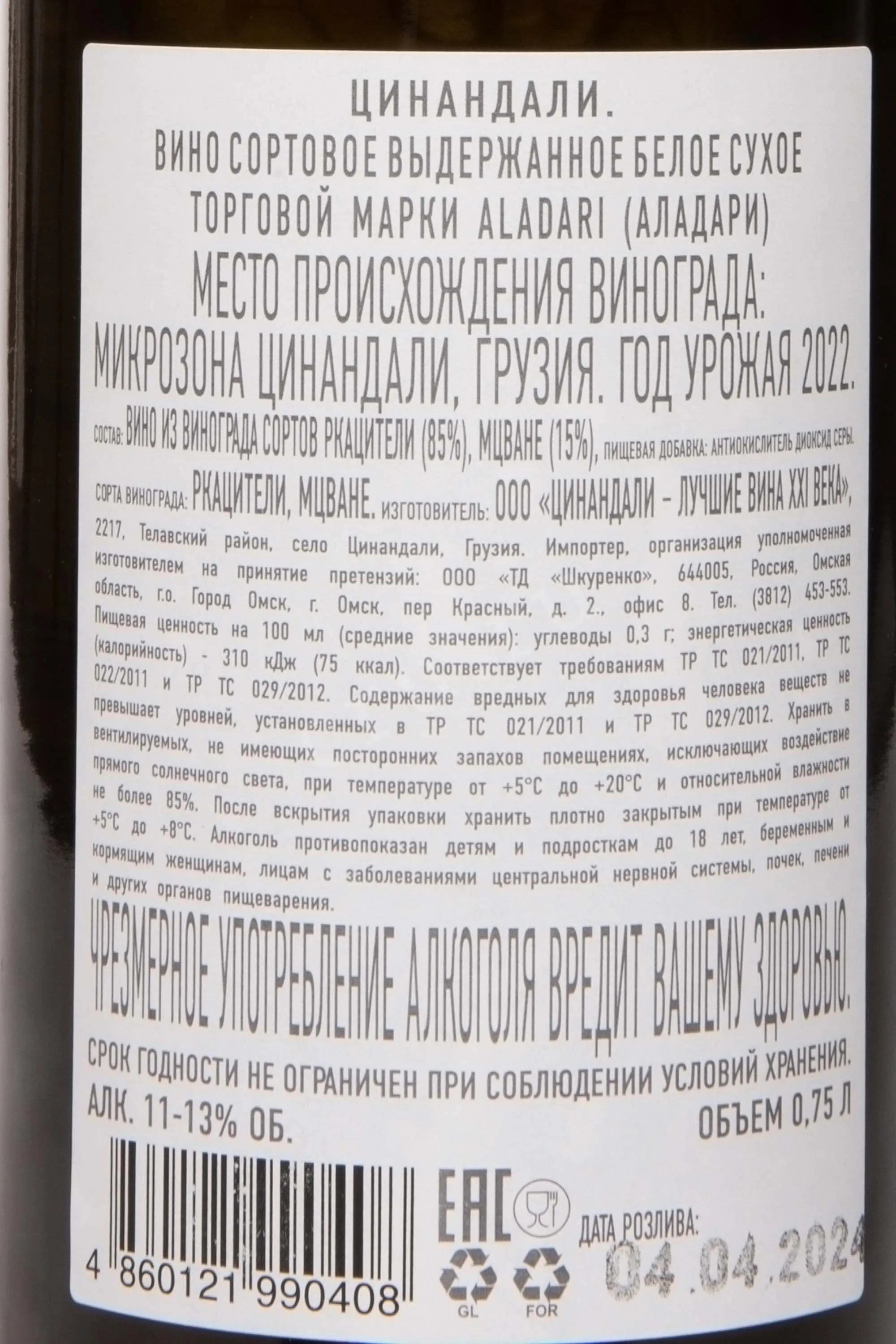 Aladari Tsinandali 2022 0.75 л купить - Грузинское вино Аладари Цинандали цена в магазинег. Москва, ул. Профсоюзная, д. 16/1010:00-22:00 Ежедневно+7 (495) 920-20-02info@cru.ru