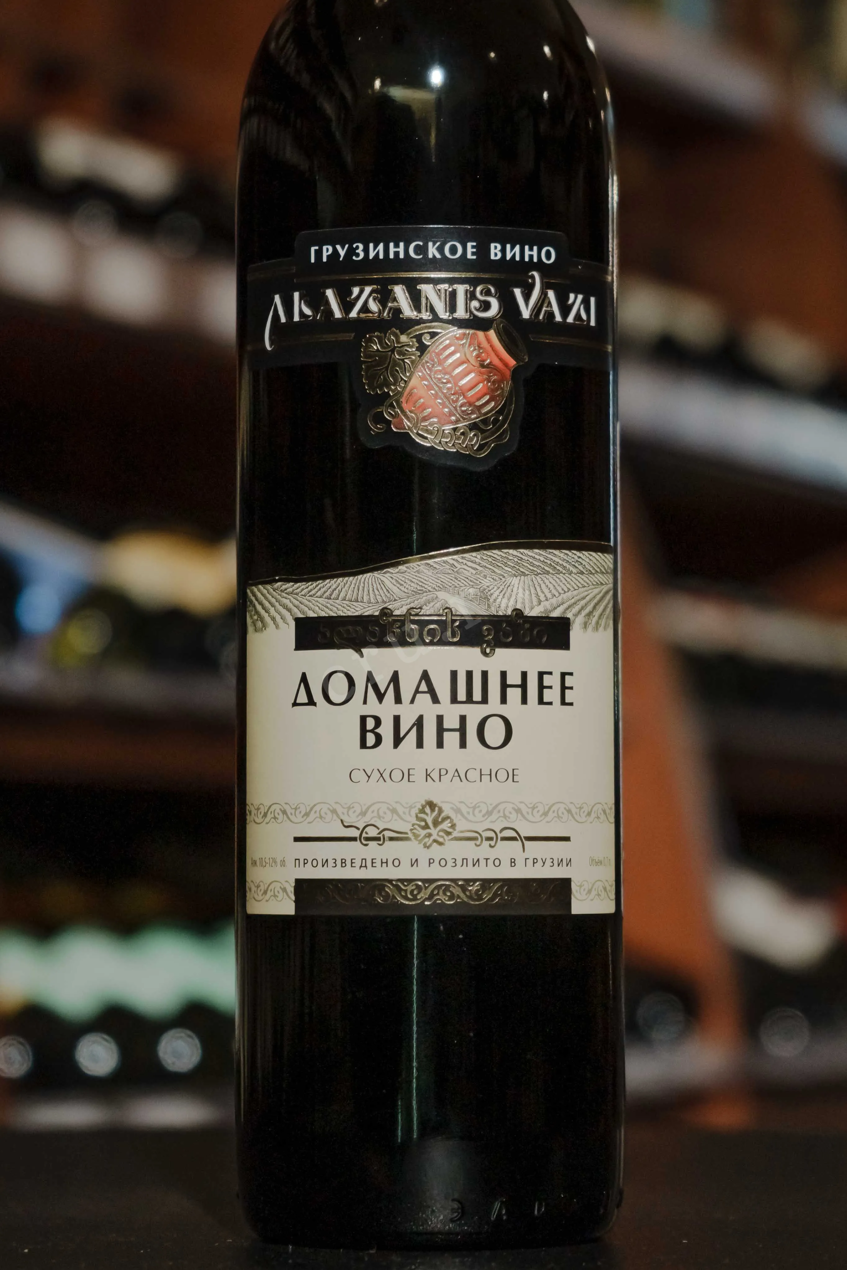 Красное сухое вино Alazanis Vazi Domashnee Red Dry отличается мягким букетом, присущим домашним винам, т. к. изготавливается по традиционным рецептам без применения искусственных добавок и сложного оборудования. Спелый виноград одного аборигенного сорта, собираемый на сложенных суглинком, гумусом и черноземом плантациях Кахетии, проходит этапы мацерации и ферментации. Уровень содержания алкоголя в вине средний — 12%.