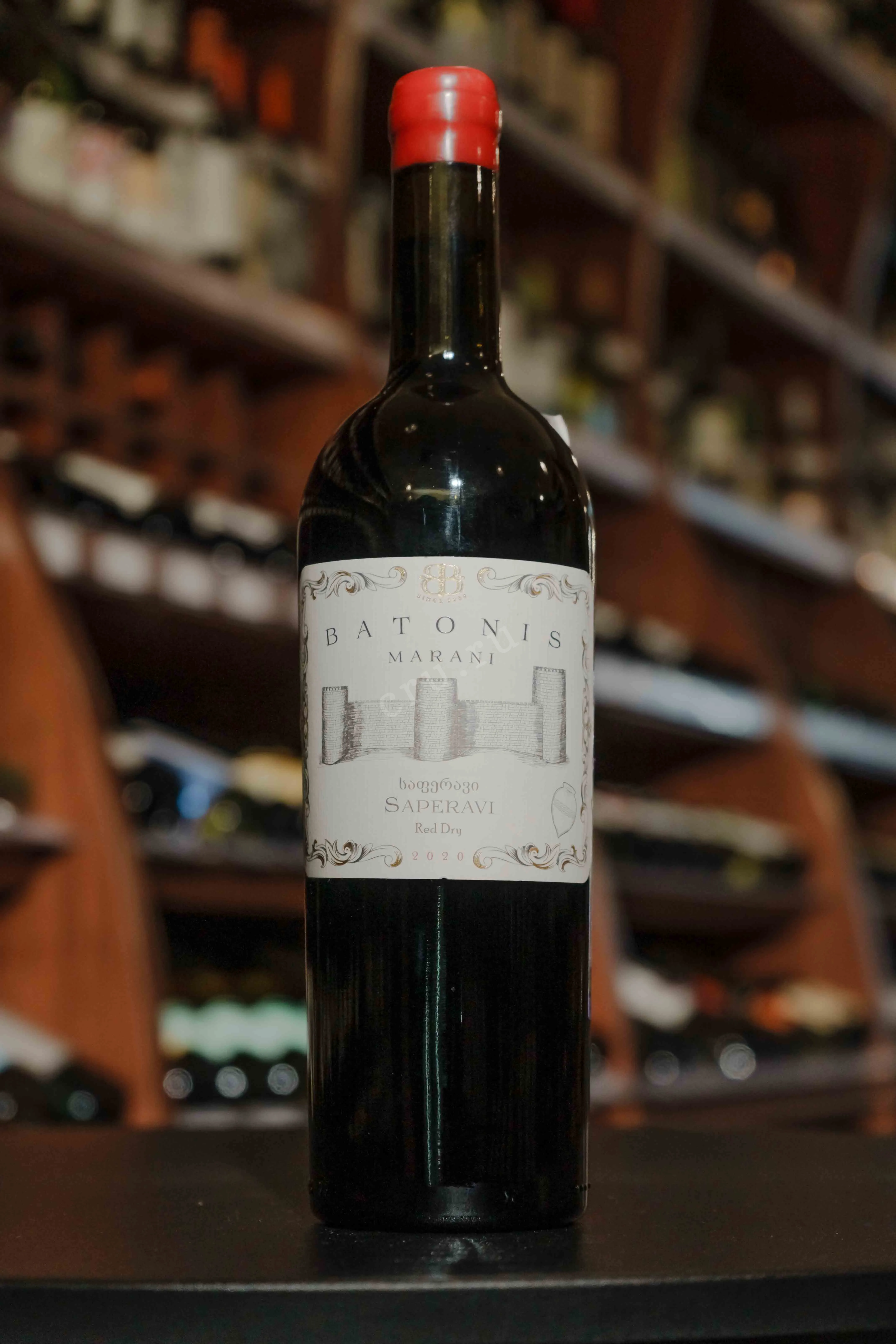 Batonis Marani Saperavi 2020 имеет насыщенный рубиновый цвет и выразительный аромат спелой ежевики, вишни и чернослива, дополненный тонами специй и лёгкими минеральными нюансами. Вкус полнотелый и гармоничный, с мягкими танинами и длительным послевкусием, в котором ощущаются ноты тёмных ягод и лёгкая пряность.
