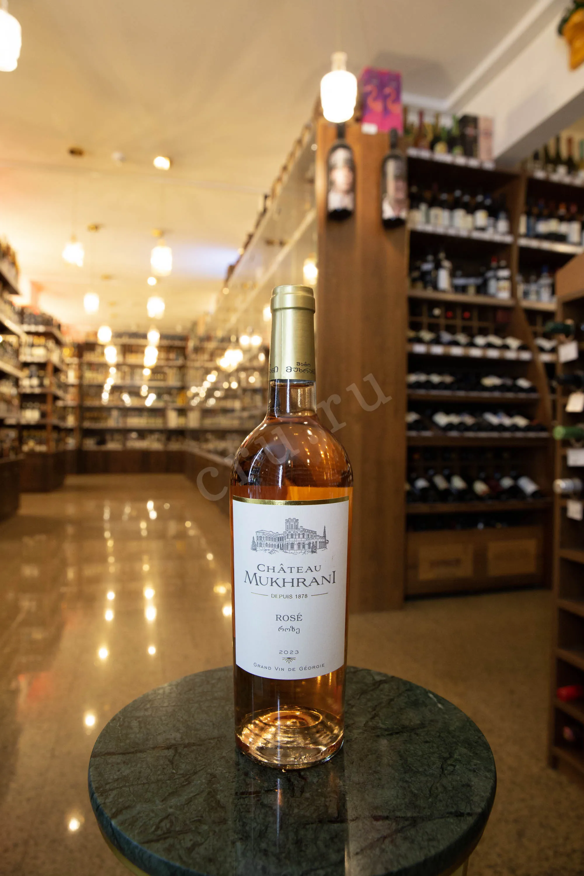 Вино розовое сухое Chateau Mukhrani Rose 2019 г. 0,75 л изготовлено из красного грузинского винограда. Для создания напитка производитель использовал миллезимные урожаи, собранные в один сезон. В погребе ягоды прессовали и выдержали на кожице до приобретения суслом розового оттенка. Далее окрашенный виноградный сок перелили в стальные ферментеры и оставили бродить при контролируемой низкой температуре. Перед бутилированием спиртное отфильтровали для удаления осадка.