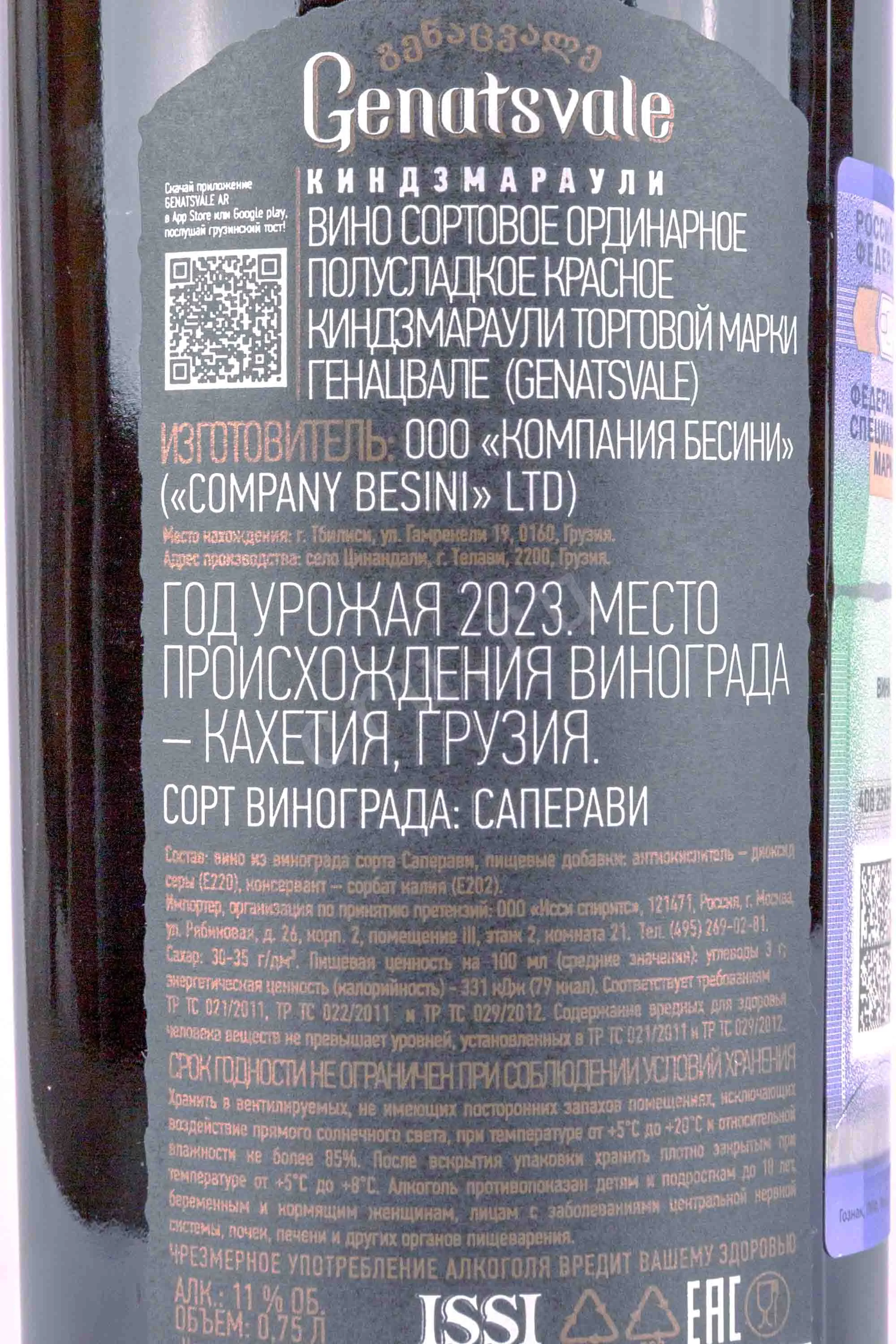 Красное полусладкое вино Genatsvale Kindzmarauli 2023 года 0,75 л производится в знаменитом грузинском регионе Кахетия, в микрозоне Киндзмараули. Виноградники находятся в долине реки с уникальным климатом и плодородной почвой, что обеспечивает ягодам оптимальную спелость и баланс сахаров. Ферментация проходит при контролируемой температуре, благодаря чему сохраняется натуральная сладость вина. Оно выдерживается непродолжительное время в стальных емкостях для сохранения свежести и ароматики. Генацвале Киндзмараули отличается гармоничным сочетанием насыщенности и природной сладости. Оно популярно среди ценителей традиционных грузинских вин, отмечено положительными отзывами за характерный вкус и яркую ароматику.