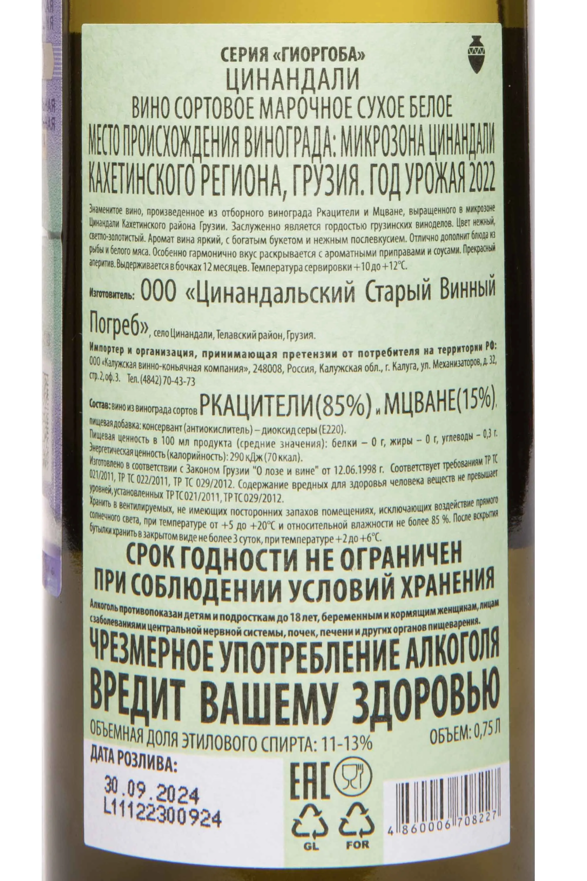 Вино Гиоргоба Цинандали 0,75 л родилось в самом сердце Кахетии, в микрозоне Цинандали — одном из старейших винодельческих регионов Грузии, где мягкий климат и известняковые почвы создавали идеальные условия для вызревания автохтонных сортов винограда. Напиток создавался под контролем мастеров ООО «Цинандальский Старый Винный Погреб» — хозяйства, сохранившего традиционные технологии наряду с современными методами выдержки. Сусло сбраживалось при контролируемой температуре, после чего напиток выдерживался не менее 12 месяцев, что придавало ему благородную структуру и округлость. Терруар Цинандали, расположенный между реками Алазани и Циви-Гомбори, насыщал ягоды минеральными оттенками, а виноград Ркацители и Мцване в составе купажа создавали гармонию свежести и глубины вкуса. Это изящное отражение грузинского характера — мягкого, но уверенного, с утончённой теплотой южного солнца.