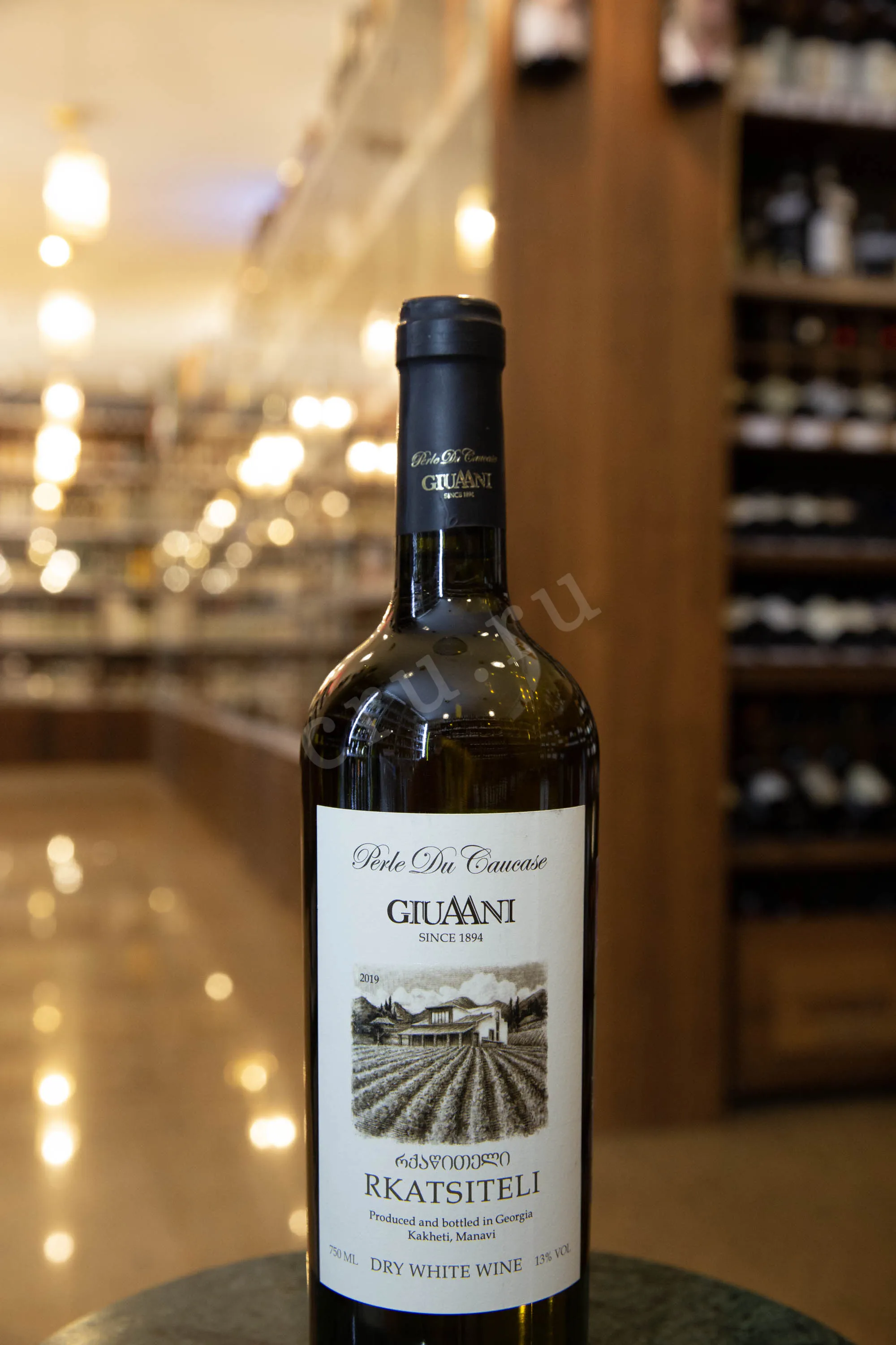 Вино Giuaani Perle du Caucase Rkatsiteli 2019 г. 0,75 л произведено в Грузии из местного винограда, собранного ручным способом в Алазанской долине на протяжении ограниченного года. Спелые ягоды, лишенные повреждений, подверглись отжиму и сбраживанию в стальных емкостях. В этой же таре прошла кратковременная выдержка. Это вино лучше всего выпить молодым — не позднее, чем через три года после бутилирования.