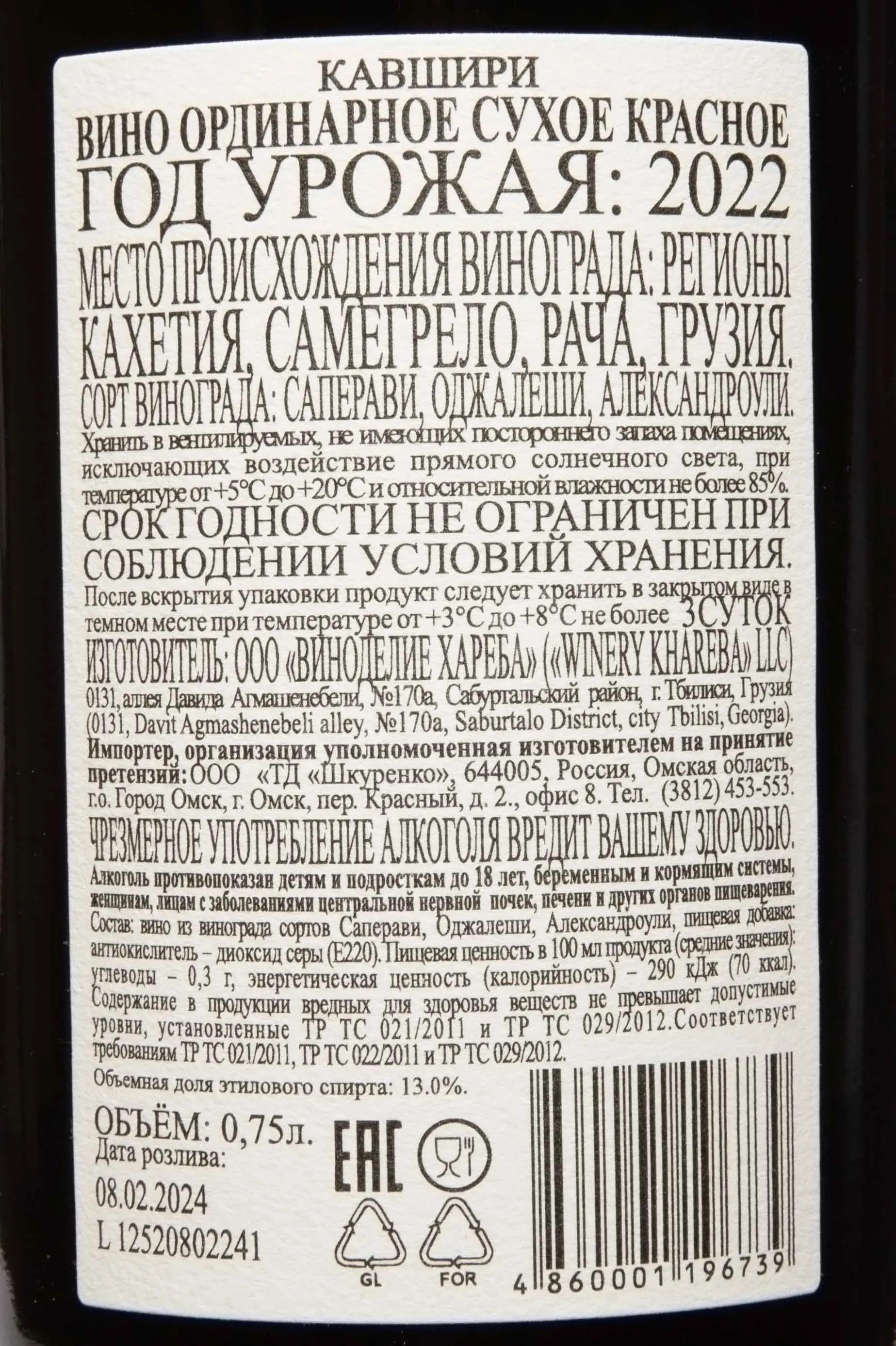 Красное сухое вино K'avshiri 2022 0,75 л — выразительный и одновременно изысканный бленд, созданный в очень необычном для Грузии стиле. Местные виноделы редко смешивают сорта, предпочитая моносортовые варианты, тем более никогда не сочетают красные и белые разновидности. Также почти. не используется прием смешивания урожаев разных годов. Красное вино K`avshiri — это смелый эксперимент творческого дуэта грузинского винодела Владимира Кублашвили и бургундского энолога Роберта Джозефа. Купаж автохтонных (в том числе и редких) и международных, красных и белых сортов ломает рамки и стирает шаблоны, но при этом удивительным образом остается отражением грузинских традиций и аутентичности. Нужно быть по-настоящему талантливыми, чтобы произвести подобный шедевр, который был отмечен многими авторитетными критиками.
