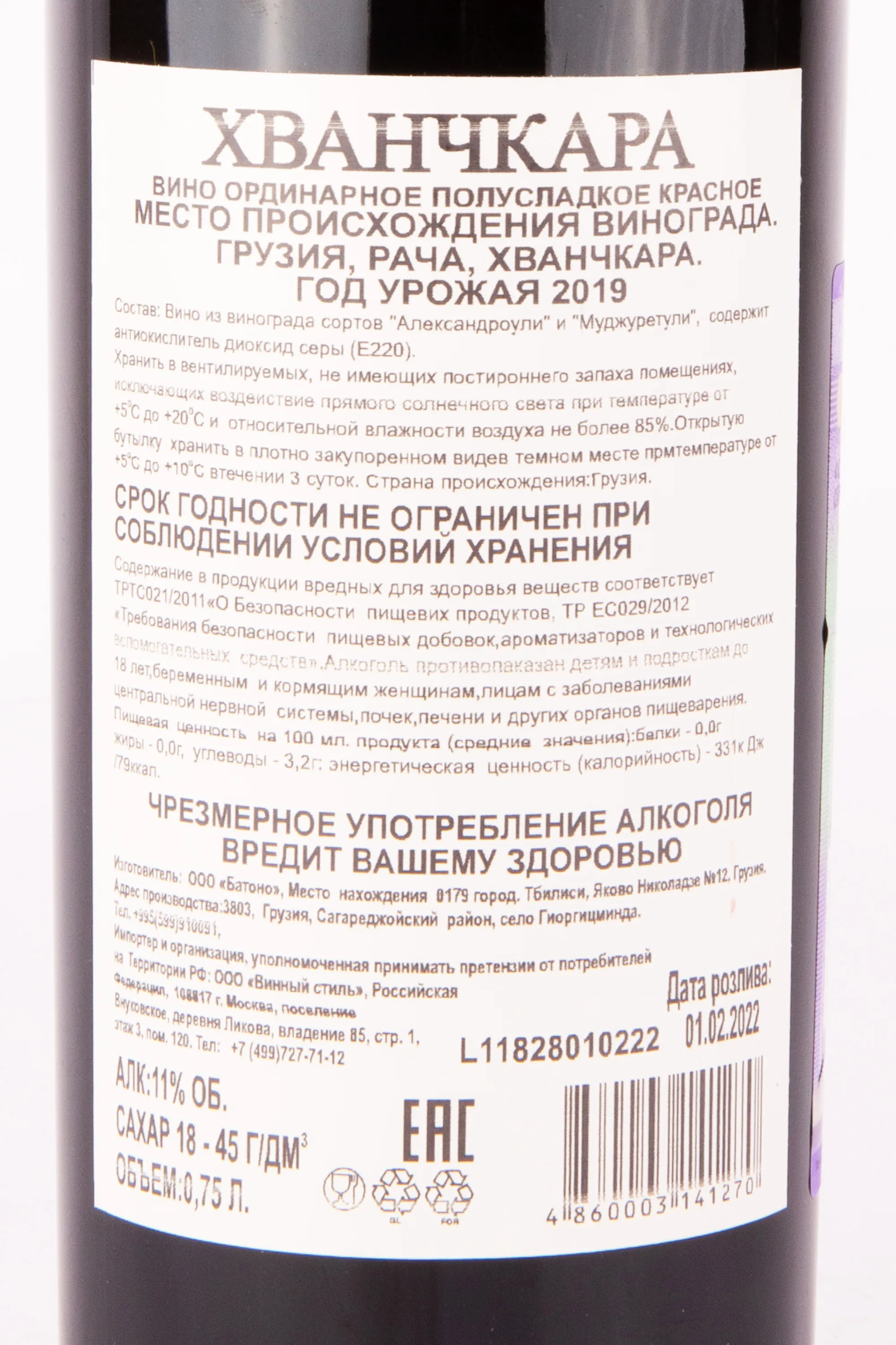 Вино Сванидзес Селлар Хванчкара 0,75 л — напиток, созданный на основе классических традиций грузинского виноделия и современного подхода к контролю качества. Производитель ООО «Батоно», расположенный в Кахетии, использовал отборный урожай виноградных сортов Александроули и Муджуретули, закупленный у КФХ Сванидзе, выращенный на солнечных склонах региона Рача-Лечхуми. Местный терруар с богатой минералами почвой и мягким горным климатом способствовал созреванию ягод с высоким содержанием сахара и гармоничной кислотностью. Технология предусматривает естественную ферментацию с частичным брожением, что позволяет сохранить природную сладость и насыщенный аромат напитка. Благодаря бережной выдержке и строгому контролю температурного режима, удалось добиться мягкой текстуры и выразительного вкусового баланса, отражающего истинный характер региона происхождения.