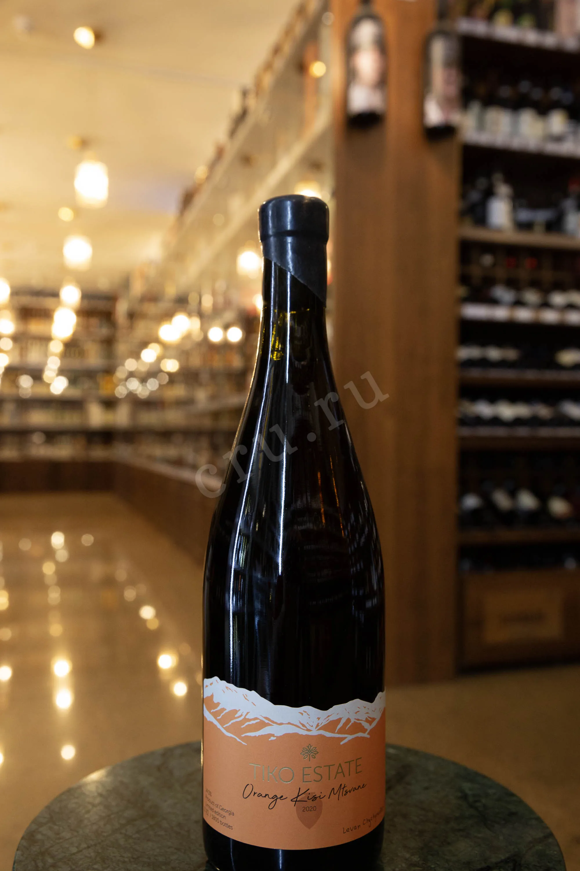 Белое сухое вино Kisi Mtsvane Tiko Orange 2020 года 0,75 л — элитный оранжевый сорт, созданный в рамках исконной технологии с применением квеври. Виноград автохтонных сортов Киси и Мцване был выращен в Кахетии, на правом берегу реки Алазани. Прессовали целые грозди, сусло использовалось вместе с мезгой и косточками. Винификация протекала полгода в глиняных сосудах при постоянной температуре. Перед бутилированием вино слегка отфильтровали и осветлили.