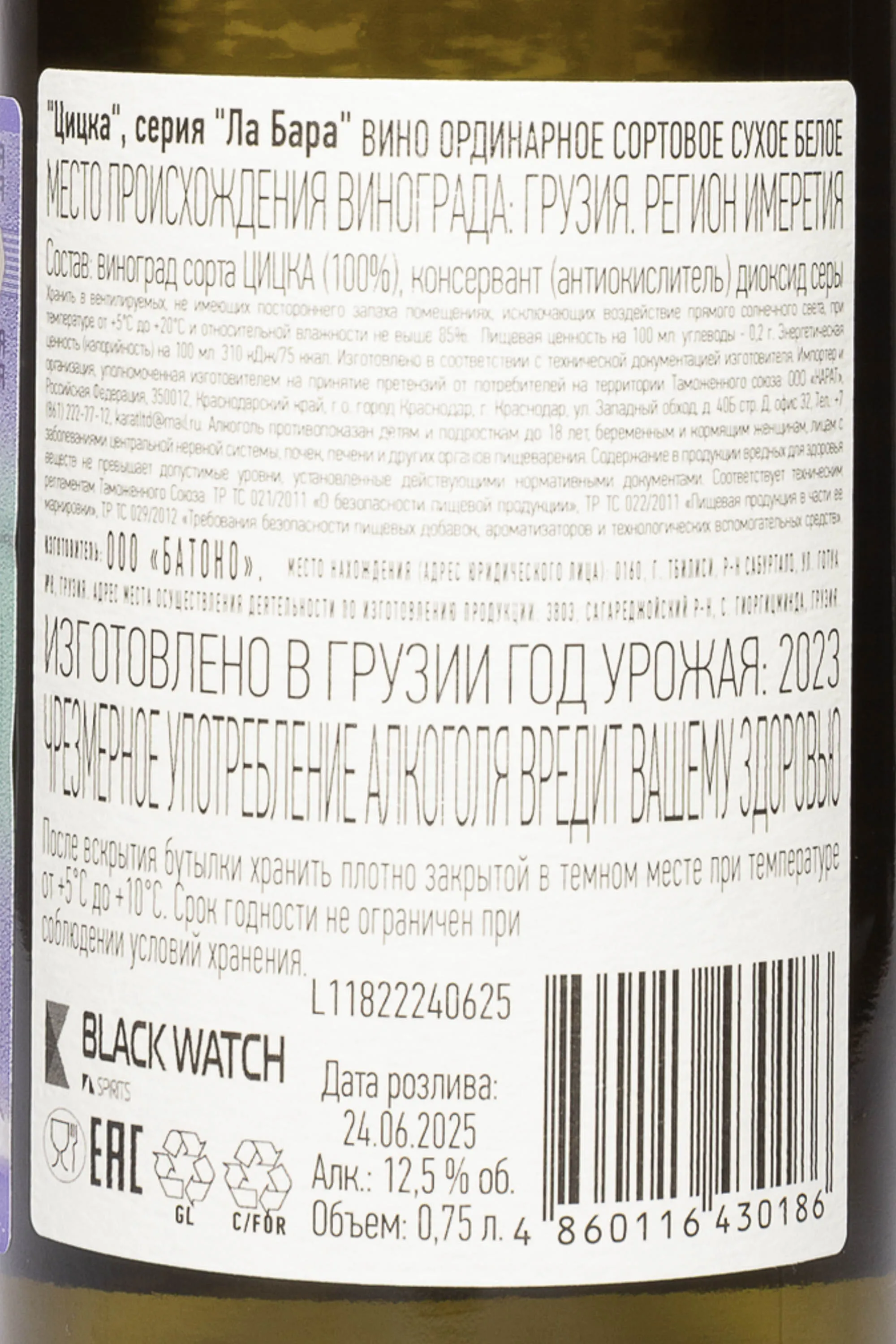 Белое сухое вино Labara Tsitska 2023 0.75 л раскрывает элегантность традиционного грузинского сорта Цицка, выросшего в Имерети. Светлое и прозрачное, оно гармонично сочетает свежесть и мягкость, даря ощущение утончённой природной легкости. Вино идеально подходит для легких закусок и романтических ужинов, подчеркивая вкус блюд, а не перебивая его. Идеально для ценителей белых вин, ищущих гармонию между ароматом и вкусом. Легкое, свежое и выразительное, оно станет отличным сопровождением как к домашнему столу, так и к праздничным мероприятиям.