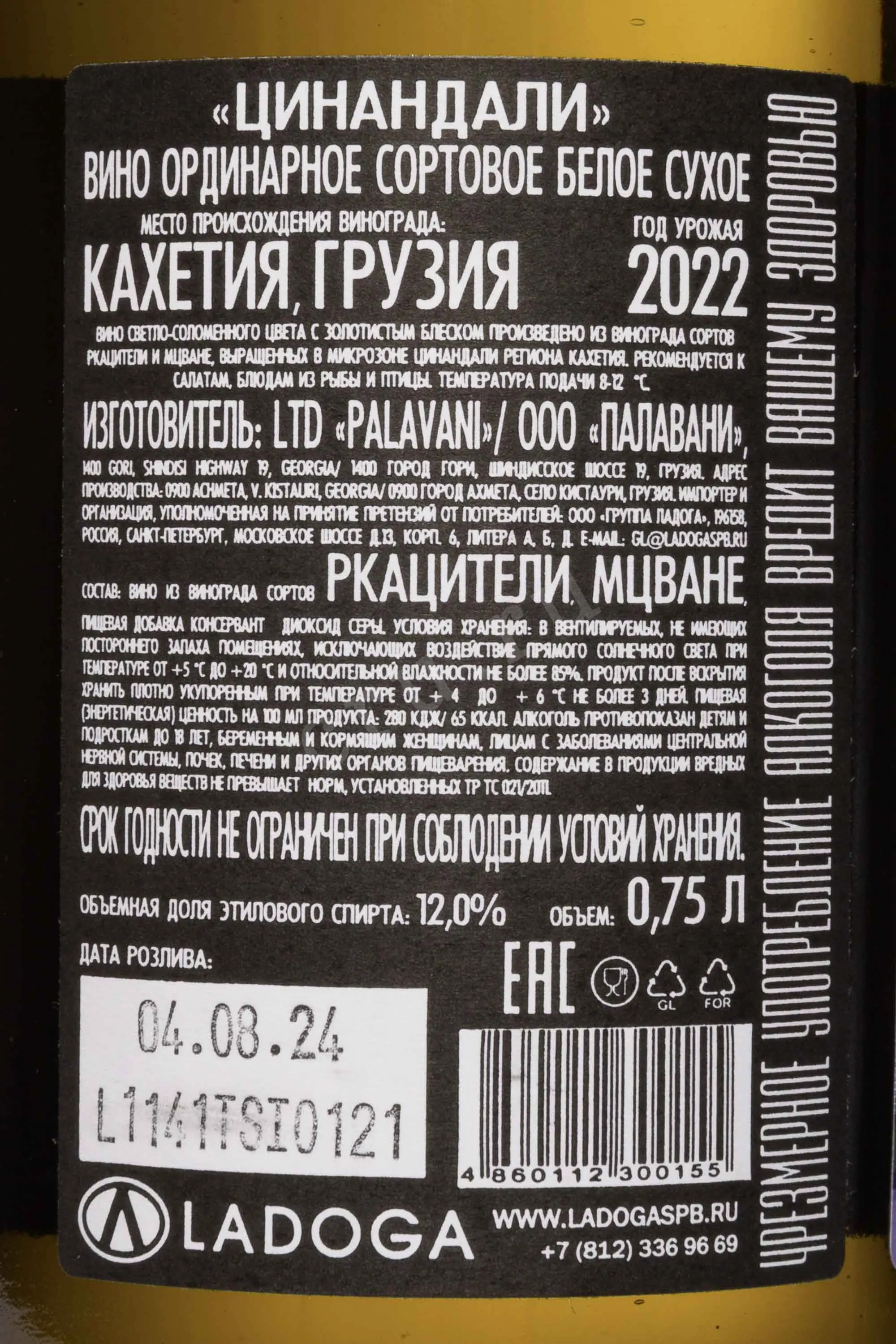 Вино Палавани Цинандали 0,75 л создавалось в сердце восточной Грузии, в регионе Кахети, где виноградарство имеет тысячелетнюю историю. Этот напиток получилит из тщательно отобранных ягод Ркацители и Мцване, собранных вручную на солнечных склонах, сформированных известняковыми и аллювиальными почвами, которые придавали ягодам тонкий баланс кислотности и минеральности. После мягкого прессования сусло проходило холодную ферментацию в стальных резервуарах, что позволило сохранить природную свежесть и выразительную ароматику сортов. Производитель ООО «Палавани» использовал традиционные грузинские методы с элементами современной винодельческой технологии, благодаря чему напиток обрел прозрачный светло-соломенный оттенок, гармоничную структуру и благородную мягкость.