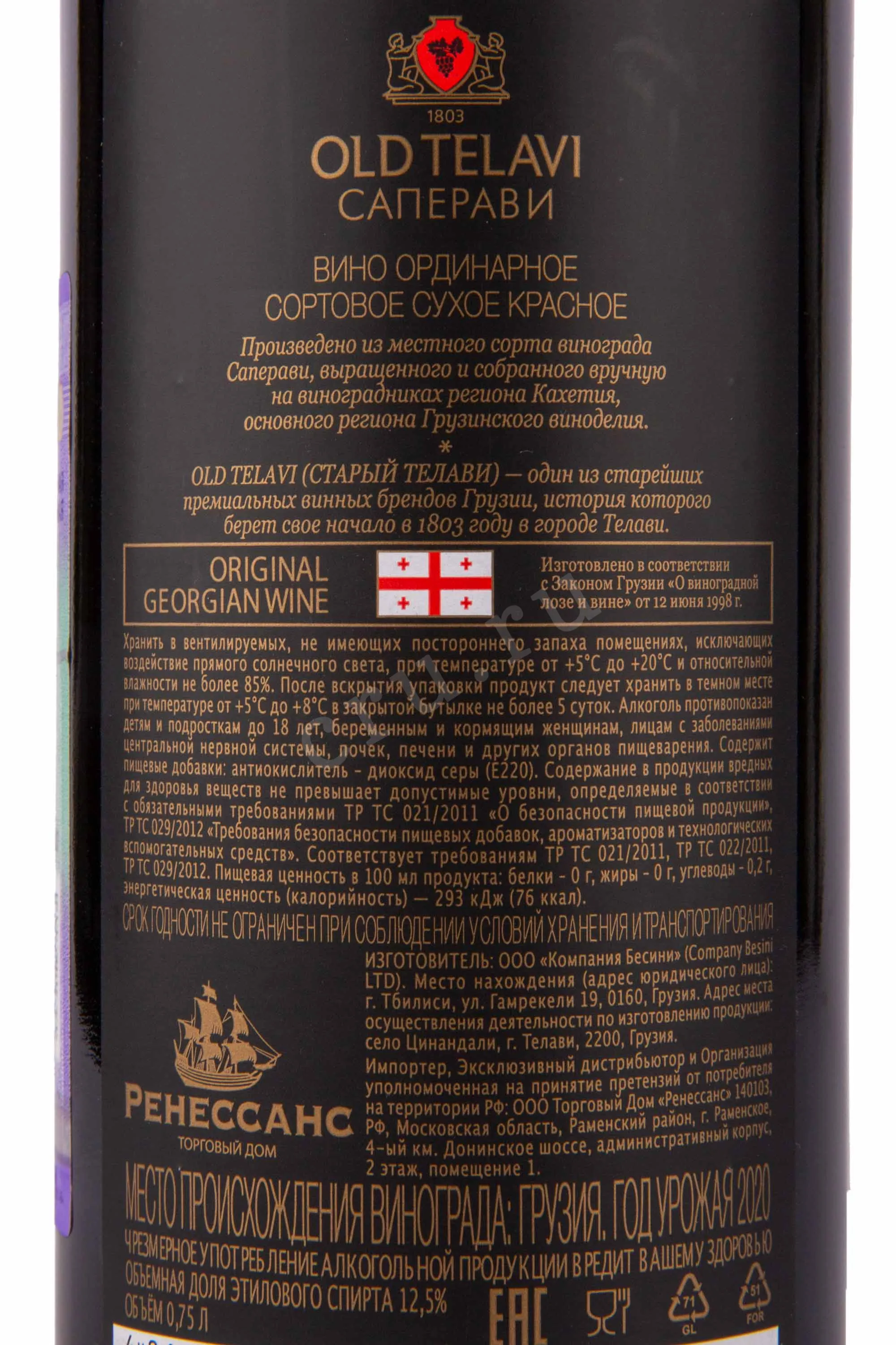 Вино Олд Телави Саперави 0,75 л родилось в сердце Кахетии — регионе, где виноделие веками было частью культурного кода. Напиток создавался по классической грузинской технологии с бережным брожением при контролируемой температуре и последующей выдержкой, что позволило сохранить природную силу и благородство сорта. Виноград Саперави выращивался на солнечных склонах Телавского района, где глинисто-известковые почвы и умеренный континентальный климат с перепадами дневных и ночных температур придавали ягодам плотную структуру и насыщенность. Каждый урожай отбирался вручную, а сусло проходило длительную мацерацию на мезге, благодаря чему напиток обрел выразительный цвет и глубину вкуса. Производитель — грузинская винодельня Old Telavi, сочетающая традиции и современный подход, что позволило создать гармоничный продукт с аутентичным характером кахетинского терруара.