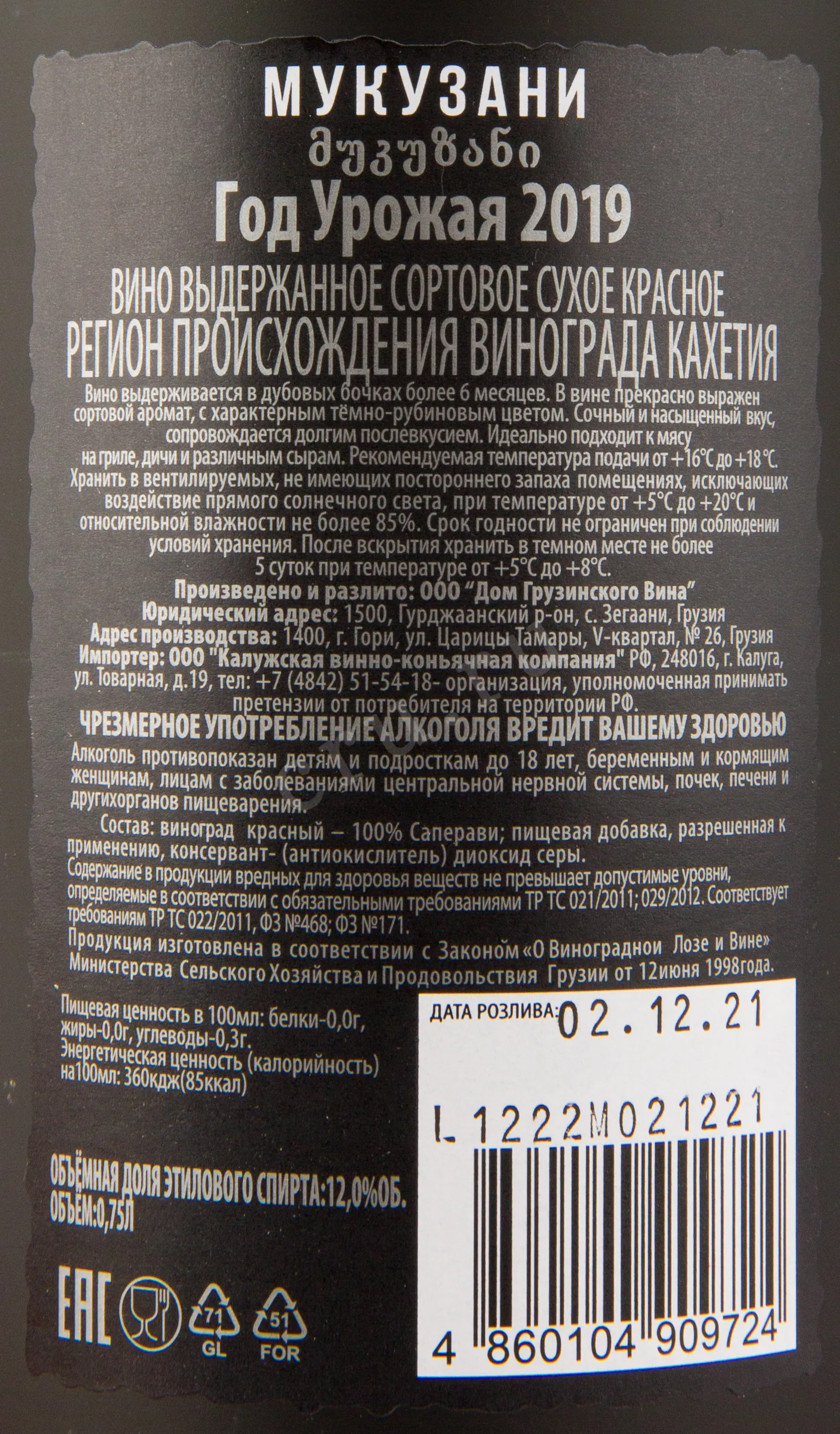 Вино Сталинское Слово Мукузани 0,75 л создаётся в лучших традициях грузинского виноделия и воплощает характер благородных вин Кахетии. Производится компанией «Дом Грузинского Вина» из автохтонного сорта винограда Саперави, выращенного на солнечных склонах Алазани, где глинисто-известковые почвы и континентальный климат с тёплыми днями и прохладными ночами формируют насыщенный вкус и выраженный аромат ягод. Урожай собирается вручную в период оптимальной зрелости, после чего ягоды подвергаются мягкому прессованию. Ферментация проходит при контролируемой температуре с последующей выдержкой не менее шести месяцев в дубовых бочках, что придаёт напитку глубину, бархатистую структуру и едва ощутимые нюансы пряных специй. «Сталинское Слово» отличается мощным, но сбалансированным характером, отражающим дух грузинской земли и мастерство виноделов.