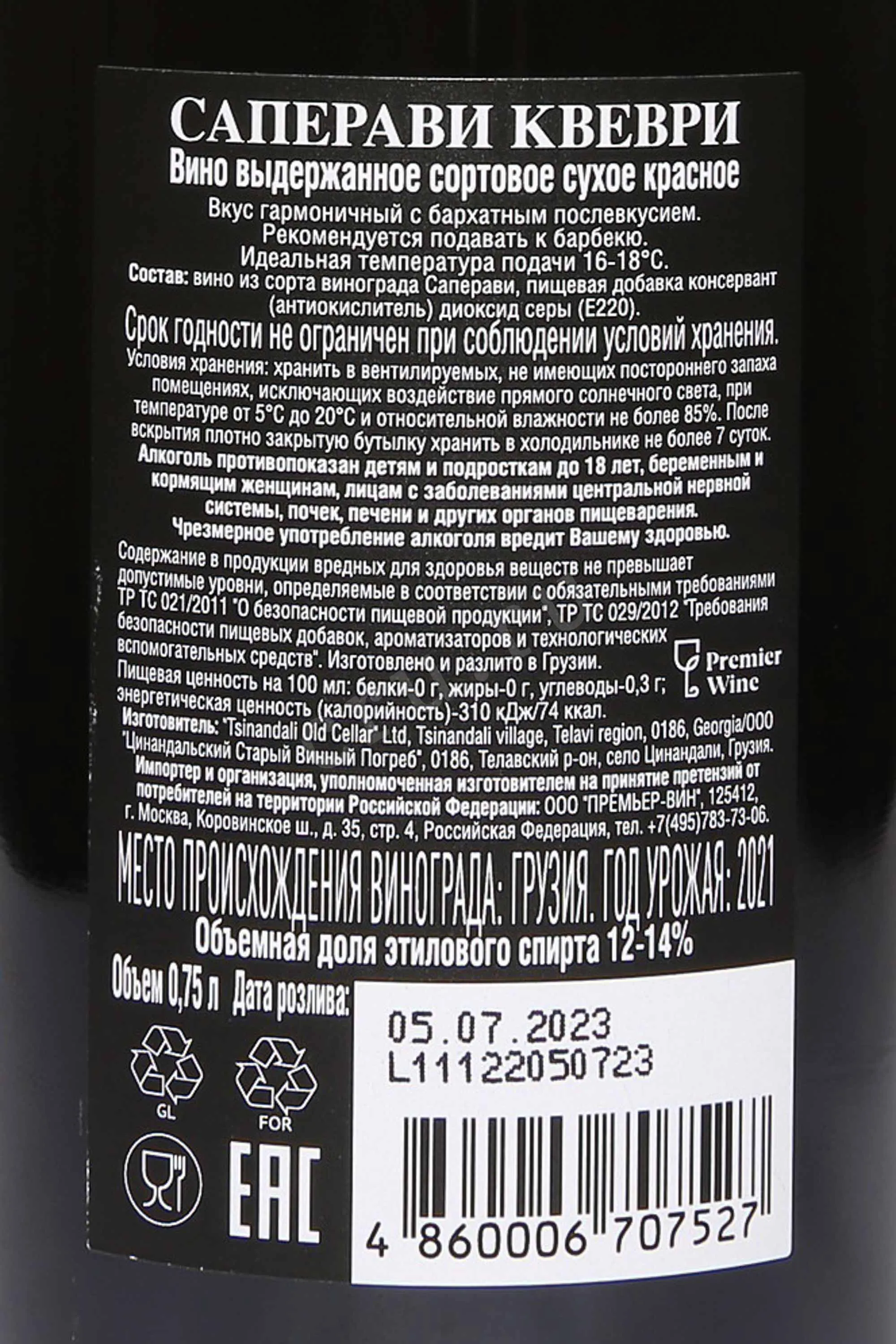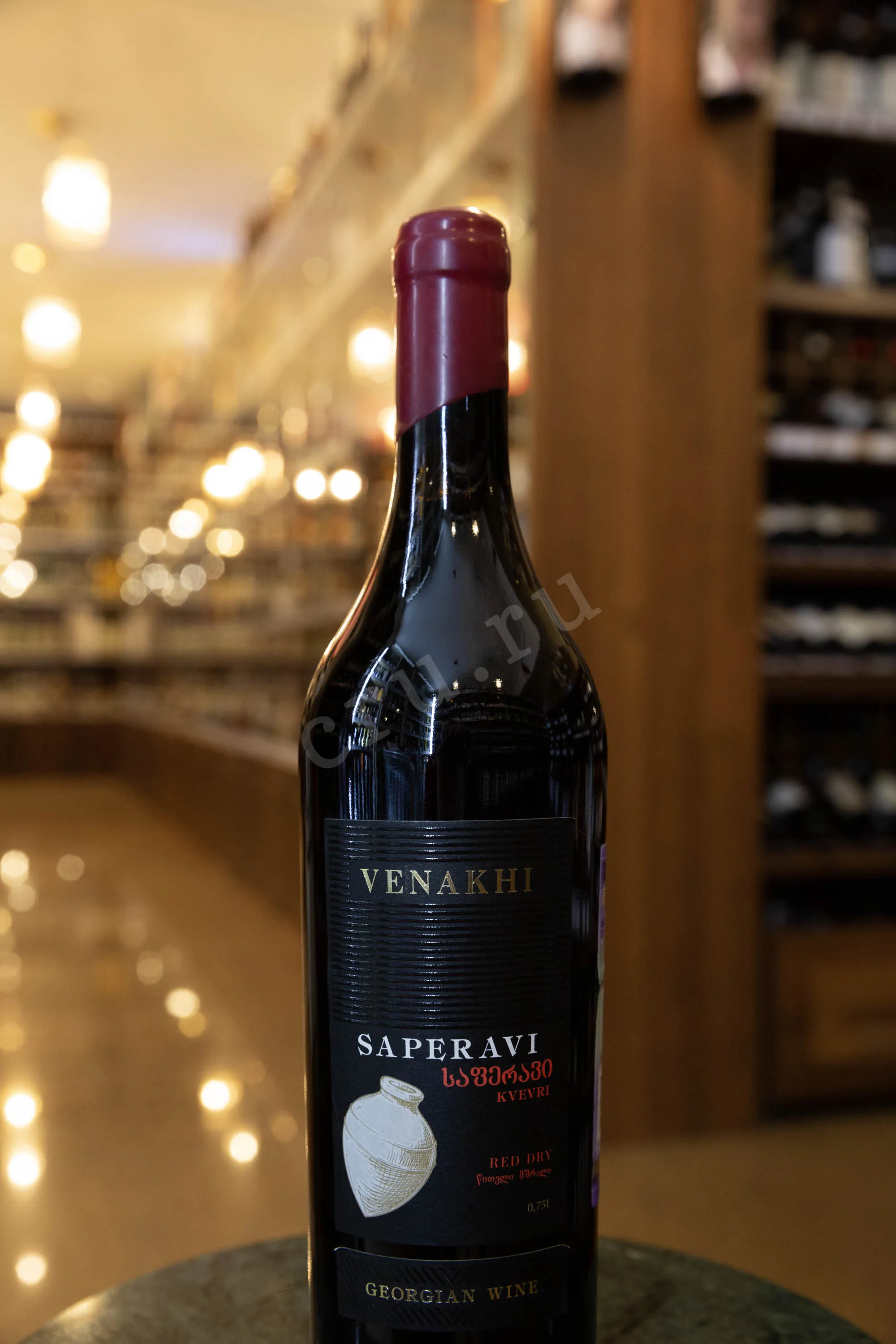 Красное сухое вино Venakhi Saperavi Kvevri 2021 года 0,75 л создано в традиционном грузинском стиле и отражает особенности классического Саперави. Виноград был выращен в Кахетии, где тёплый климат и перепады температур между днём и ночью помогают ягодам сохранить кислотность и набрать насыщенный вкус. Урожай 2021 года был удачным: лето оказалось солнечным, с достаточным количеством дождей весной, что обеспечило равномерное созревание винограда. Для винификации использовались большие глиняные веретенообразные кувшины — квеври, закопанные по горло в землю. Брожение протекало с мезгой и натуральными дрожжами, без регуляции температуры, с минимальным вмешательством, что придало вину глубину и богатую структуру. Выдержка в глиняных сосудах усилила минеральность и подчёркнула сортовой характер. Вино отмечено вниманием критиков за гармоничное сочетание традиционной технологии и современного стиля, оно получило высокие оценки на конкурсах.
