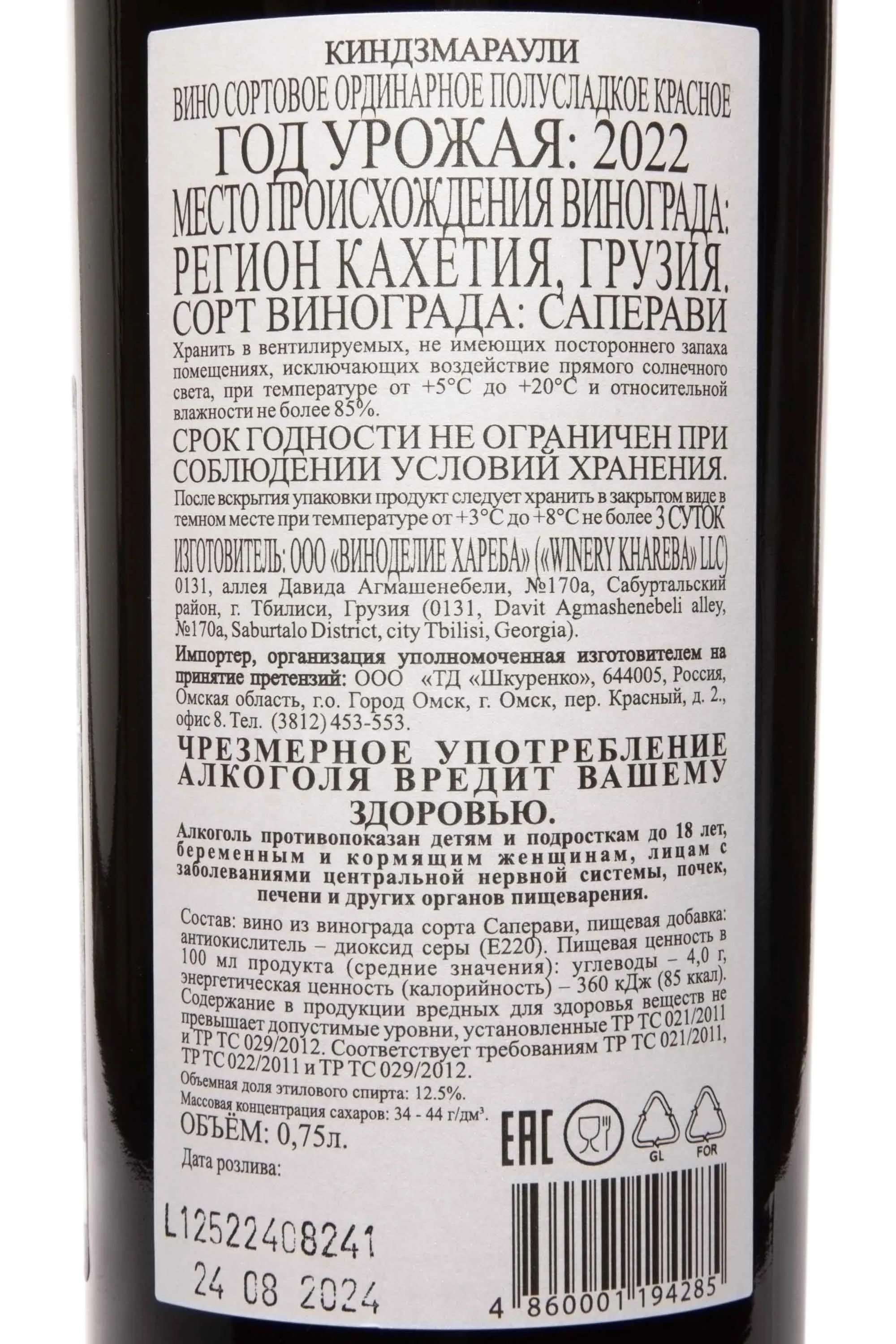 Вино Winery Khareba Kindzmarauli 2022 — это утончённое красное полусладкое вино, созданное в самом сердце грузинского виноделия — регионе Кахетия. Напиток производится из винограда сорта Саперави, выращенного в микрозоне Киндзмараули на левом берегу реки Алазани, где климат и почвы идеально подходят для этого автохтонного сорта. Урожай 2022 года собирался вручную, прошёл щадящую ферментацию при контролируемой температуре, сохранив естественную фруктовую выразительность и бархатистую структуру. Вино радует ярким ароматом и мягким, гармоничным вкусом. Оно отлично подойдёт как для ежедневных ужинов, так и для особых случаев. Рекомендуется употреблять охлаждённым — так оно максимально раскроет свой характер. Особенно хорошо сочетается с лёгкими блюдами, что делает его универсальным выбором для разной кухни.