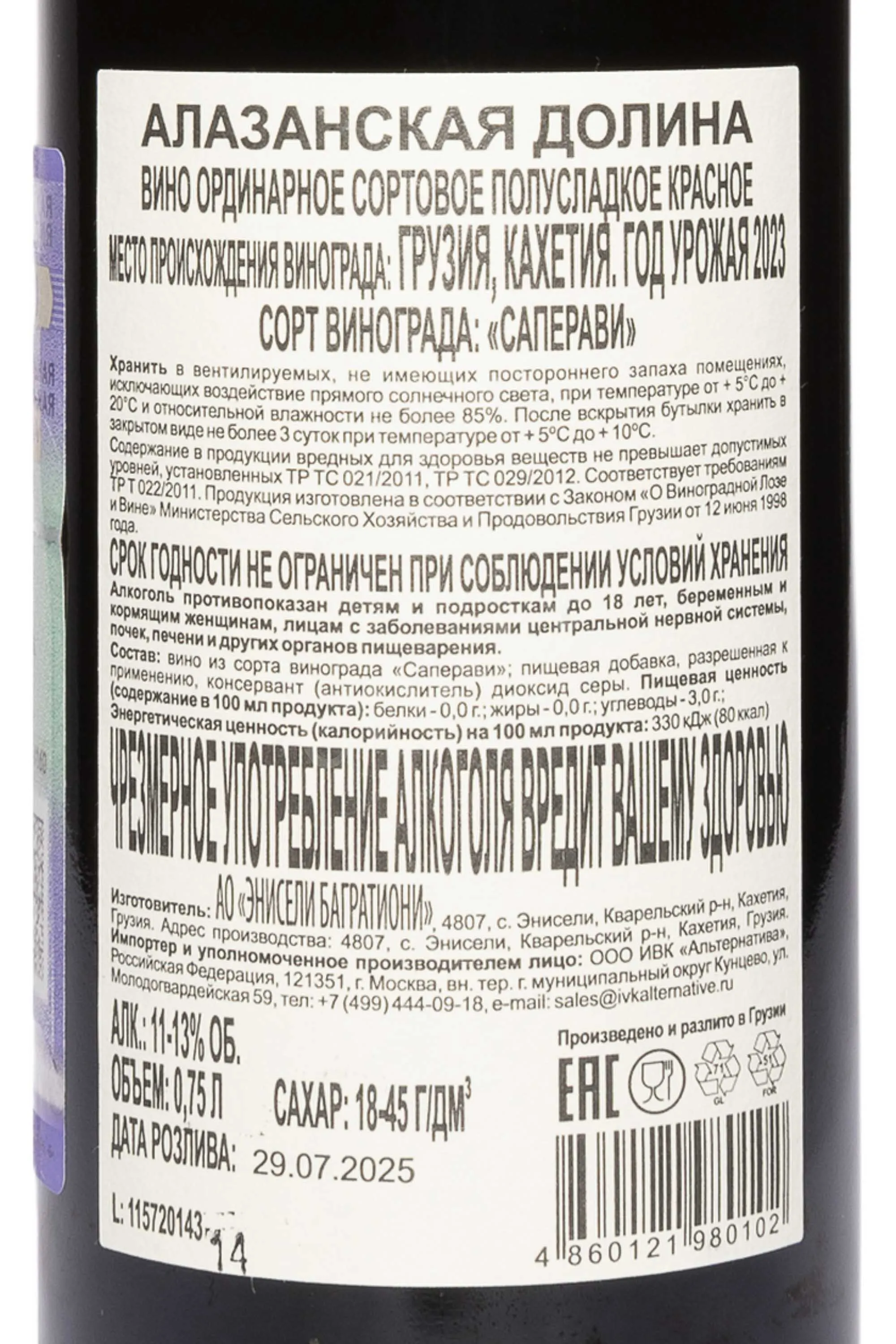Красное полусладкое вино Zakaria Jorjadze Alazani Valley 2023 года 0,75 л создано из отборного винограда, выращенного в знаменитой Алазанской долине Кахетии. Этот регион Грузии известен мягким климатом, солнечными днями и глинисто-известковыми почвами, которые придают вину яркий фруктовый характер. Урожай 2023 года оказался удачным для виноделов: лето было тёплым и сухим, что позволило ягодам накопить оптимальный уровень сахара и сохранить свежую кислотность. Брожение проходило в стальных резервуарах при контролируемой температуре, чтобы подчеркнуть естественные ароматы винограда. Выдержка была короткой, что сохранило свежесть и мягкость вкуса. Это вино отражает традиции грузинского виноделия и современный подход к качеству. Захария Джорджадзе Алазанская Долина стабильно получает высокие оценки экспертов за чистоту вкуса и гармоничное сочетание сладости и фруктов.
