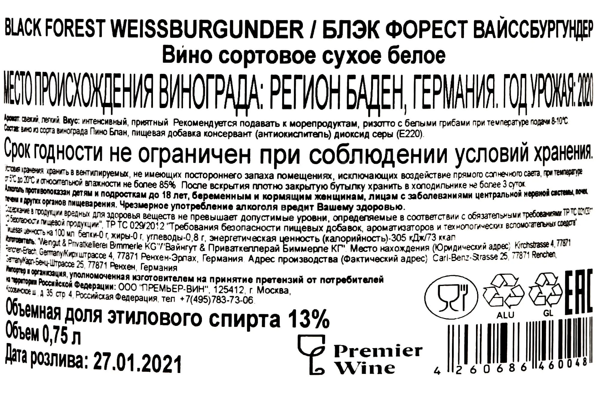 Black Forest Weissburgunder 0.75 л купить - Немецкое вино Блэк Форест Вайссбургундер цена в магазинег. Москва, ул. Профсоюзная, д. 16/1010:00-22:00 Ежедневно+7 (495) 920-20-02info@cru.ru