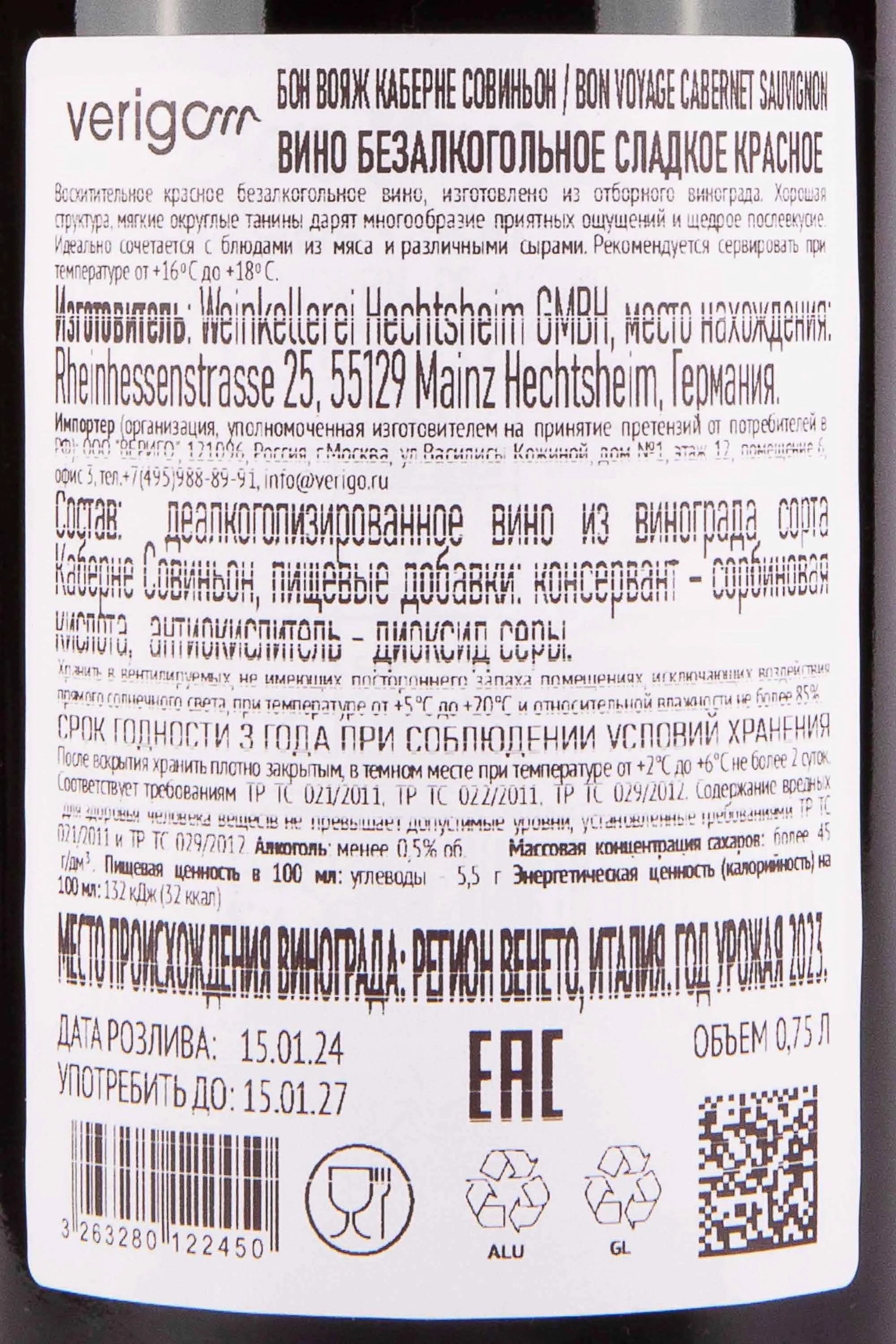 Bon Voyage Cabernet Sauvignon 0.75 л купить - Немецкое вино Бон Вояж Каберне Совиньон цена в магазине г. Москва, ул. Профсоюзная, д. 16/10 10:00-22:00 Ежедневно +7 (495) 920-20-02 info@cru.ru