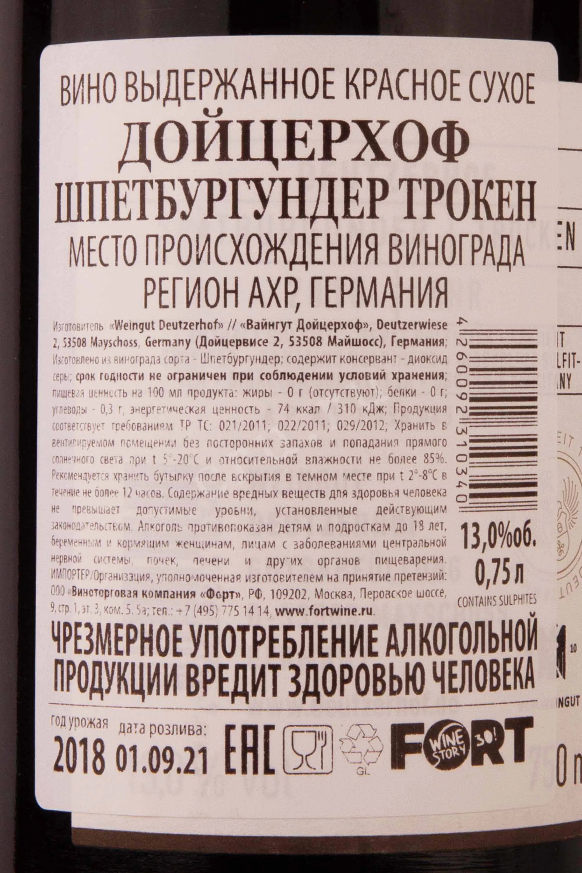 Дойцерхоф Шпетбургундер Трокен 2018 0.75