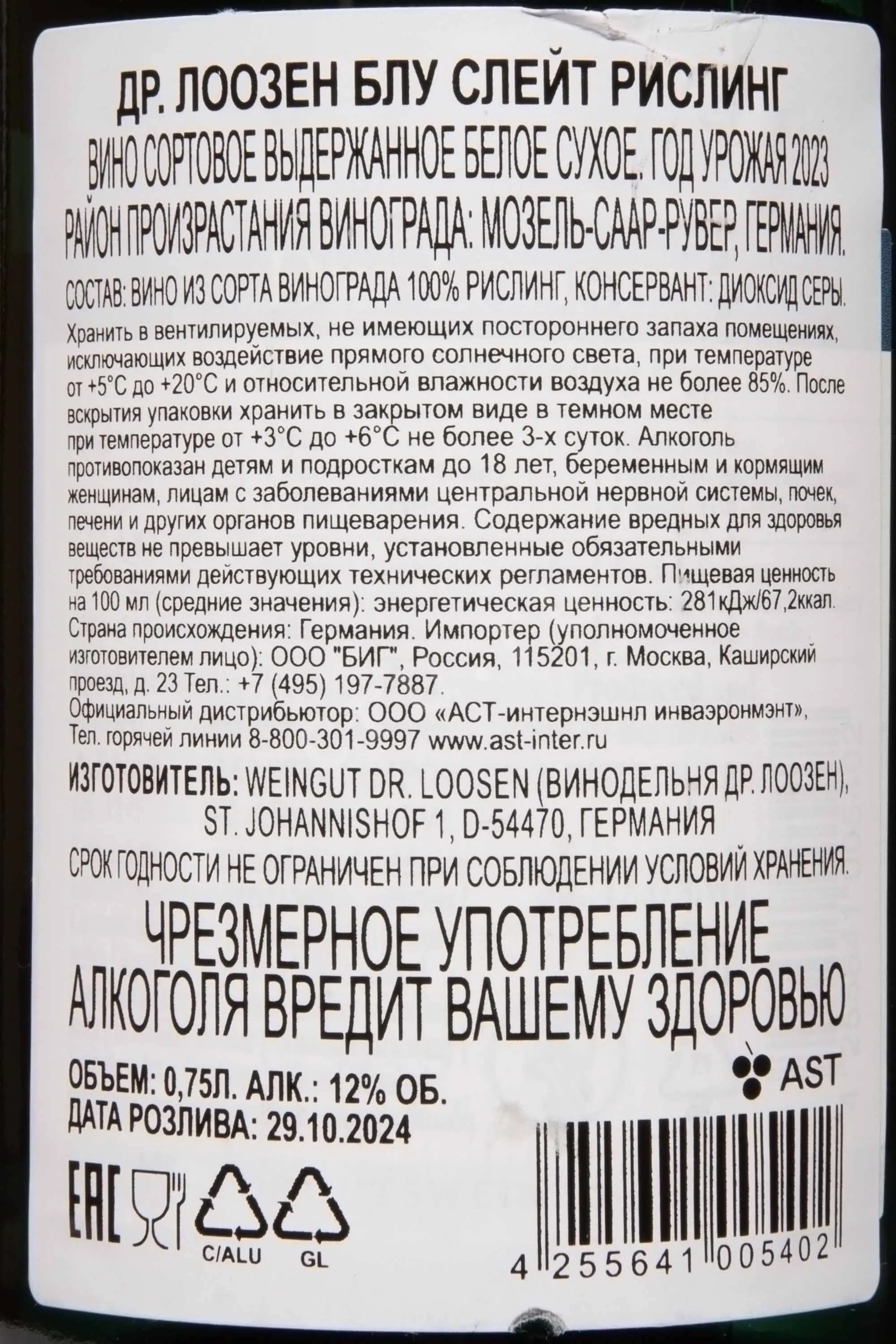 Др.Лоозен Блю Слейт Рислинг Драй 2023 0.75