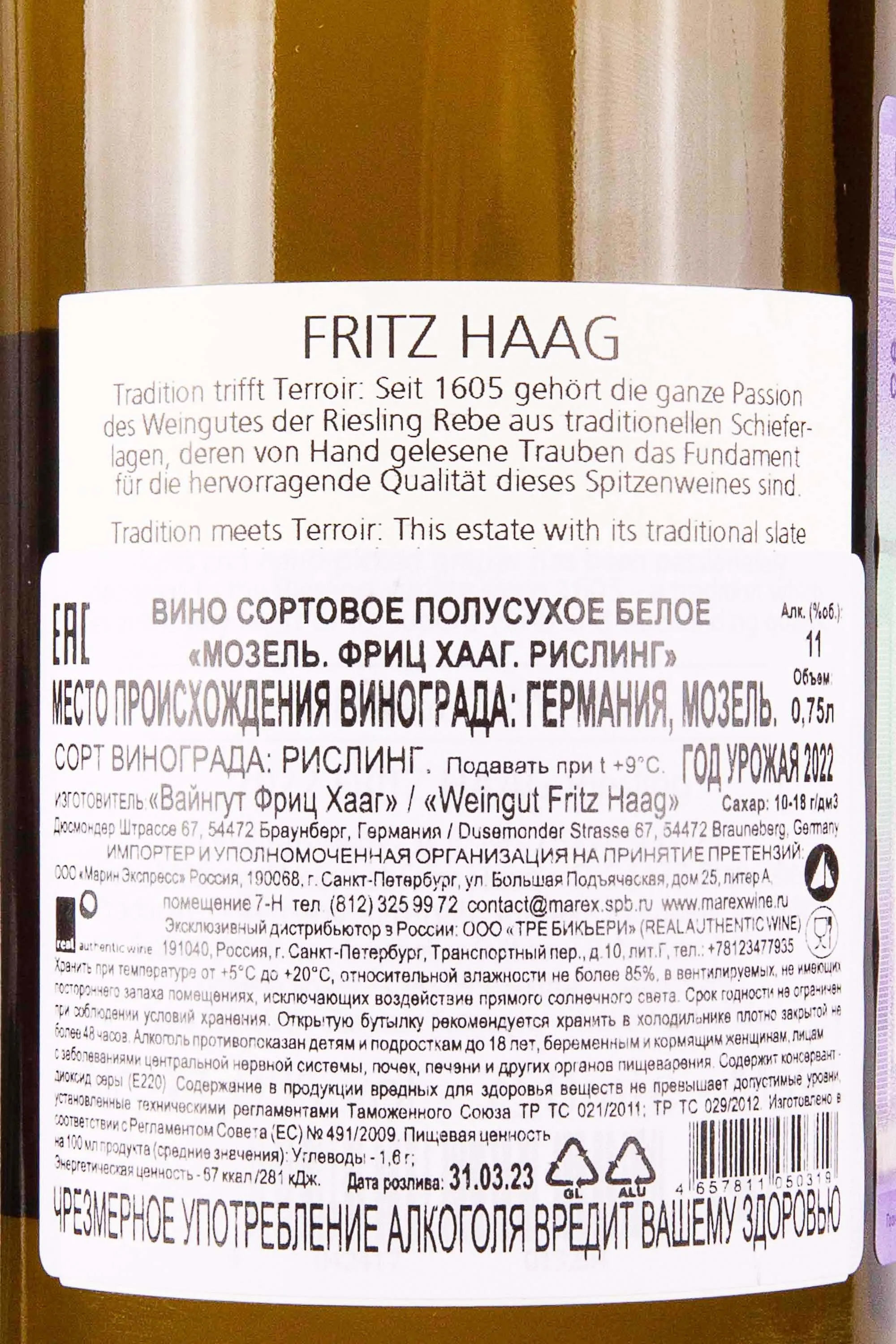 Белое полусухое вино Fritz Haag Riesling 2022 0,75 л представляет собой классический немецкий Рислинг из Мозеля. Виноград был выращен на южных склонах с синими сланцевыми почвами вокруг Браунебергер Юффер. Виноград собирали вручную. После мягкого прессования проводилось спиртовое брожение сусла на естественных дрожжах. Выдержка протекала в больших дубовых фудах и емкостях из нержавеющей стали на осадке несколько месяцев для формирования тонкой текстуры. Уникальность вина подтверждена высокими оценками критиков — 91 балл от Стюарта Пиготта и 88 от Mosel Fine Wines.