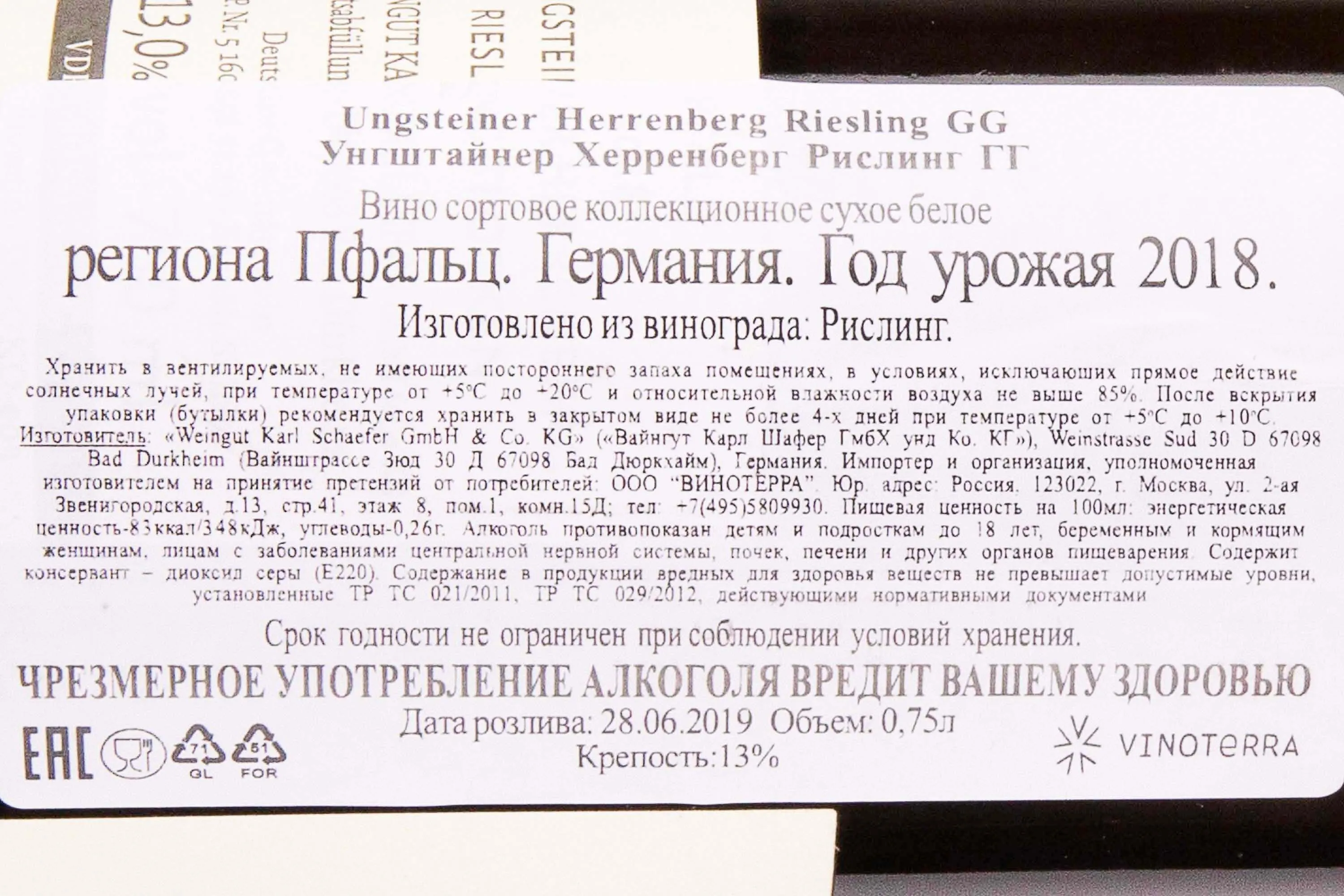 Вино Karl Schaefer Ungsteiner Herrenberg Riesling GG 2018 0.75 л родилось на виноградниках престижного региона Пфальц в Германии. Урожай собирали вручную на склонах холма Herrenberg с богатой известняково-глинистой почвой, формирующей утончённый минеральный профиль. Производство осуществлялось по технологии холодной ферментации при контролируемой температуре в стальных резервуарах, что позволило сохранить яркость фруктового характера и подчеркнуть элегантность напитка. В процессе выдержки мастер-винодел применял исключительно натуральные дрожжи и минимальное вмешательство, что подчеркнуло естественные особенности терруара и наделило напиток тонкими нюансами.