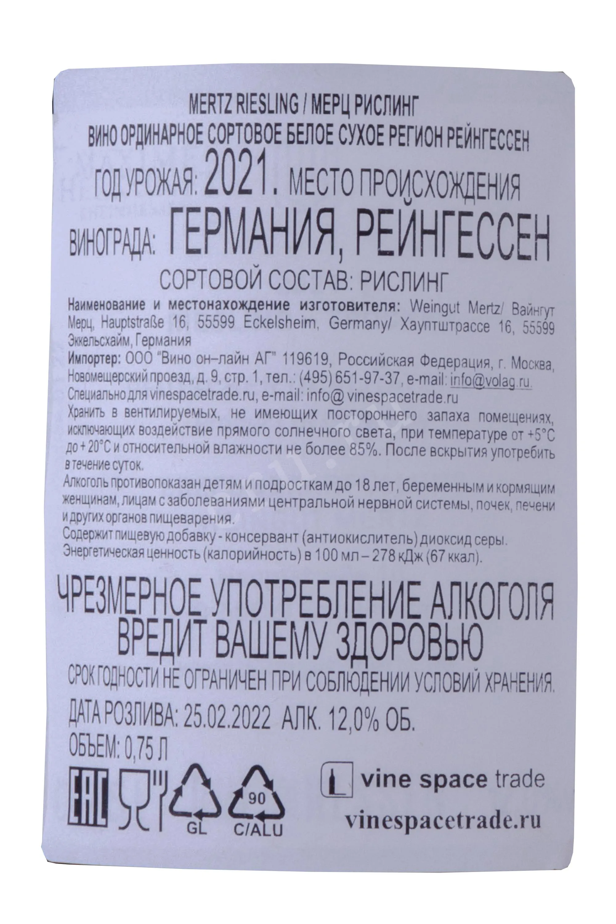 Вино Mertz Riesling 2021 0.75 л было создано из отборного винограда, собранного вручную на живописных склонах холмов Рейнгессена. Урожай выращивался в уникальном микроклимате региона с известково-сланцевыми почвами, благодаря чему ягоды достигли оптимальной спелости с идеальным балансом сахара и кислотности. Для раскрытия потенциала сорта Рислинг применялась щадящая ферментация в стальных резервуарах при низких температурах с последующей выдержкой на тонком осадке в течение нескольких месяцев, что обеспечило напитку богатство вкуса и минеральные оттенки.