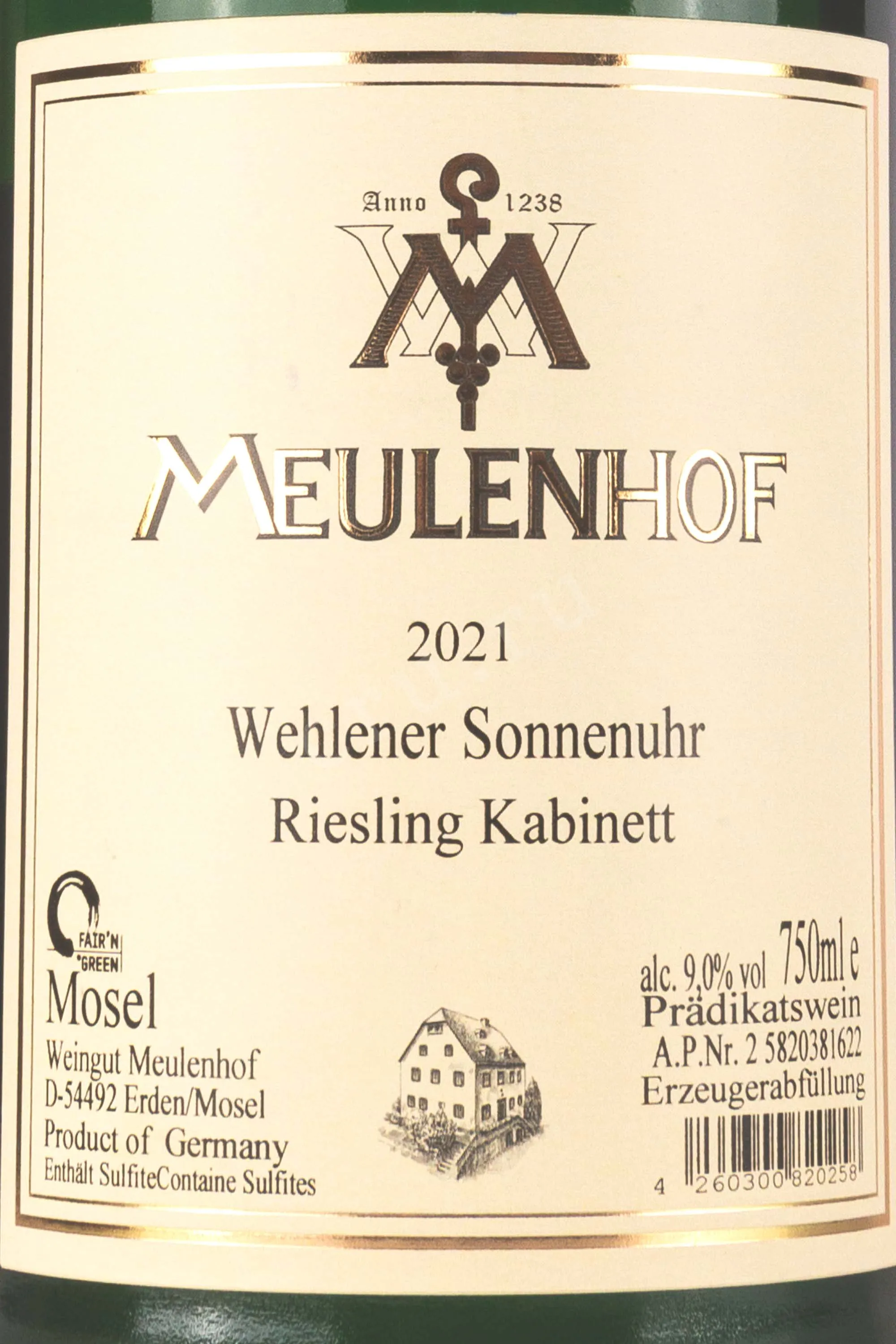 Meulenhof Wehlener Sonnenuhr Riesling Kabinett 0.75 л купить - Немецкое вино Мойленхоф Веленер Зонненур Рислинг Кабинетт цена в магазине г. Москва, ул. Профсоюзная, д. 16/10 10:00-22:00 Ежедневно +7 (495) 920-20-02 info@cru.ru
