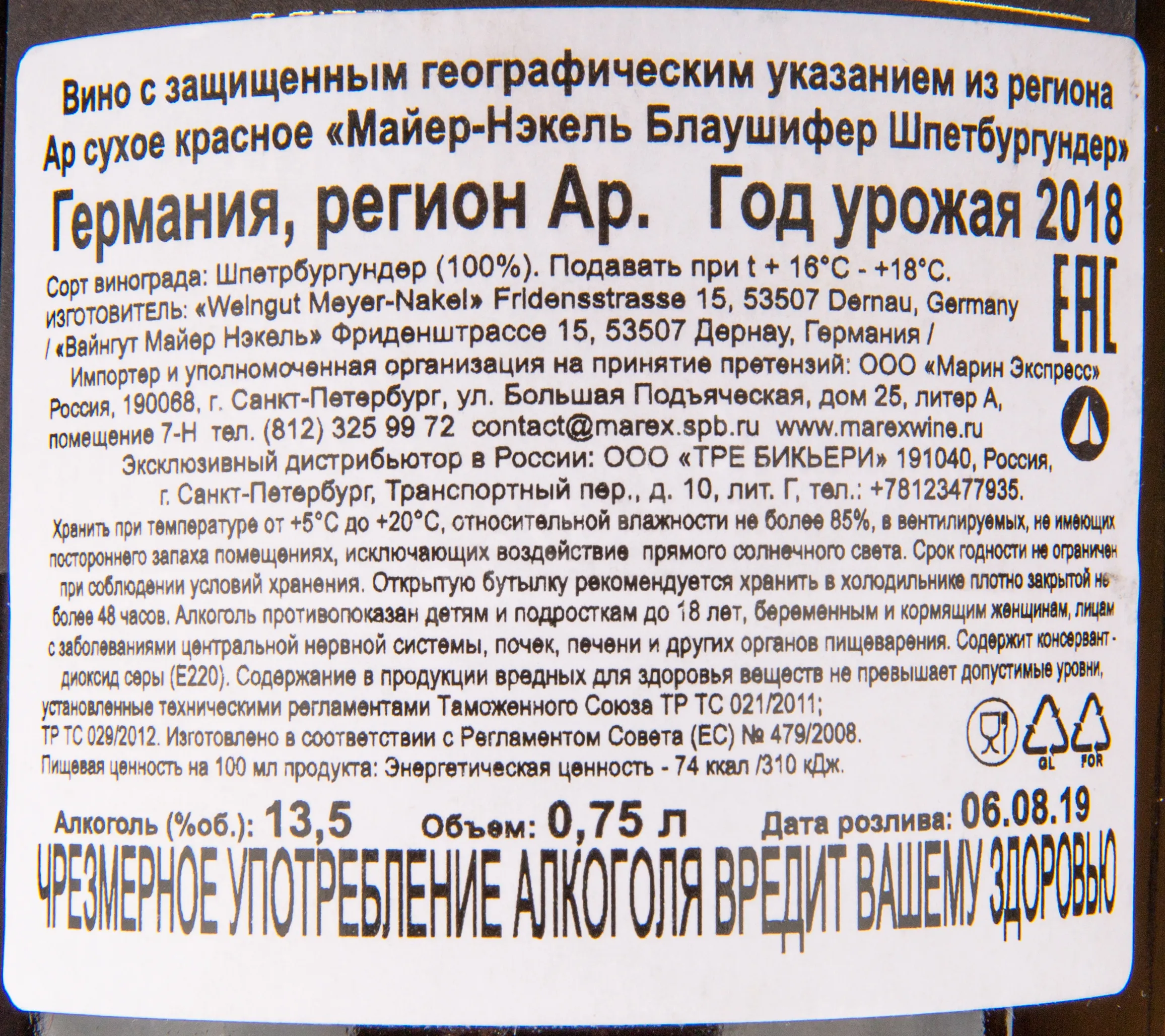 Вино Meyer-Nakel Blauschiefer Spatburgunder 2018 0.75 л создано из винограда, выращенного на отвесных склонах долины реки Ар в немецком регионе Ар, известном своими минеральными почвами, богатыми сланцем и серым шифером. Урожай собирают вручную, тщательно отбирая лучшие ягоды, после чего применяют бережную ферментацию с длительной мацерацией и выдержкой в бочках из французского дуба, что усиливает глубину вкуса и минеральную выразительность напитка. Благодаря влиянию прохладного климата и особого терруара региона Ар, вино приобретает изысканную элегантность и выразительную свежесть с минеральными нюансами.