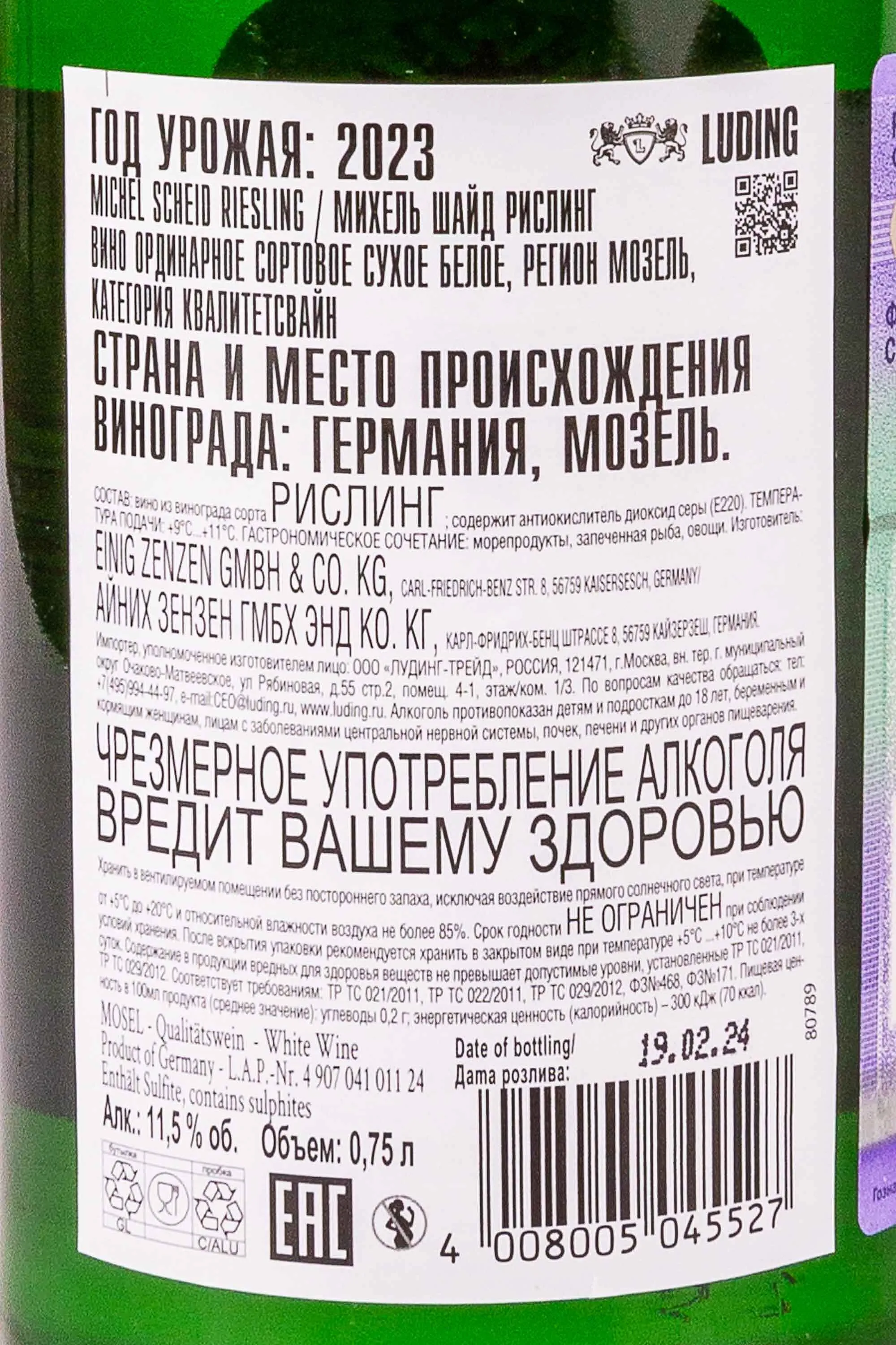 Михель Шайд Рислинг 2023 0.75