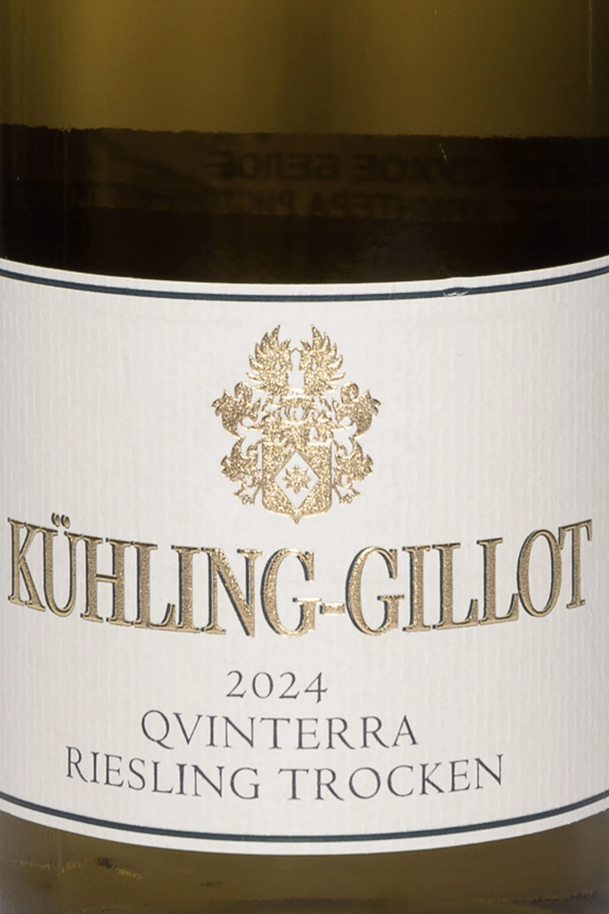 Kuhling Gillot Qvinterra Riesling Trocken Raynkhessen 2024 — изысканное белое сухое вино из знаменитого винодельческого региона Райнхессен, произведённое одним из старейших и уважаемых хозяйств Германии — Kühling-Gillot. Вино демонстрирует классическую выразительность рислинга с акцентом на свежесть, минеральность и яркую фруктовость. Благодаря балансу между кислотностью и тонкостью, оно станет отличным выбором как для повседневного наслаждения, так и в сопровождении гастрономических блюд.