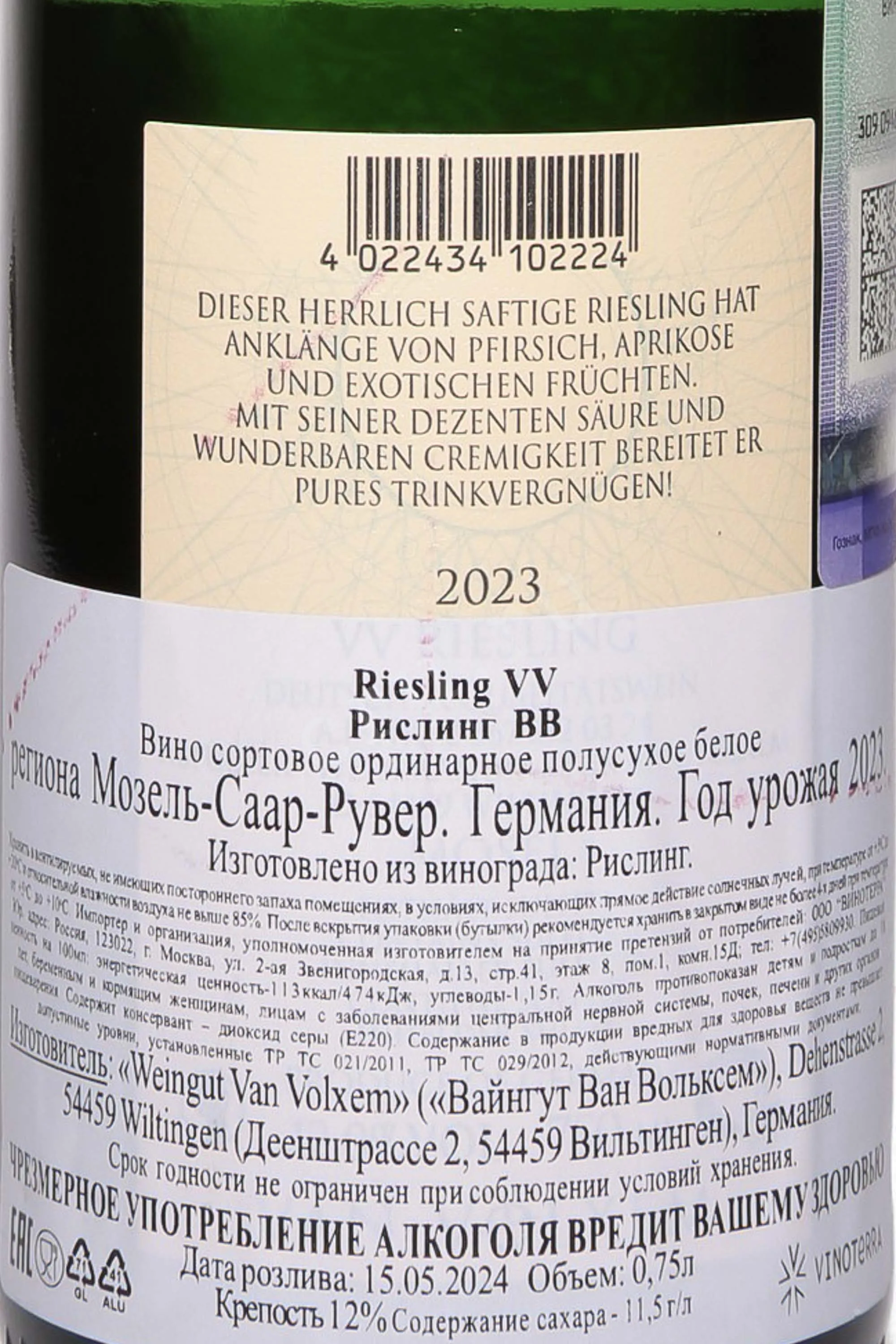 Вино Van Volxem VV Riesling 2021 0.75 л создано на винодельне в долине реки Саар, где виноградники произрастают на крутых сланцевых склонах, формировавших неповторимый минеральный профиль. Собранный вручную урожай проходил щадящий прессинг и ферментировался исключительно на натуральных дрожжах, сохраняя истинный характер терруара. Особенностью технологии стала выдержка на тонком осадке в стальных емкостях, что подчеркнуло элегантность и выразительность напитка, а также обогатило его тонкими нюансами и структурой.