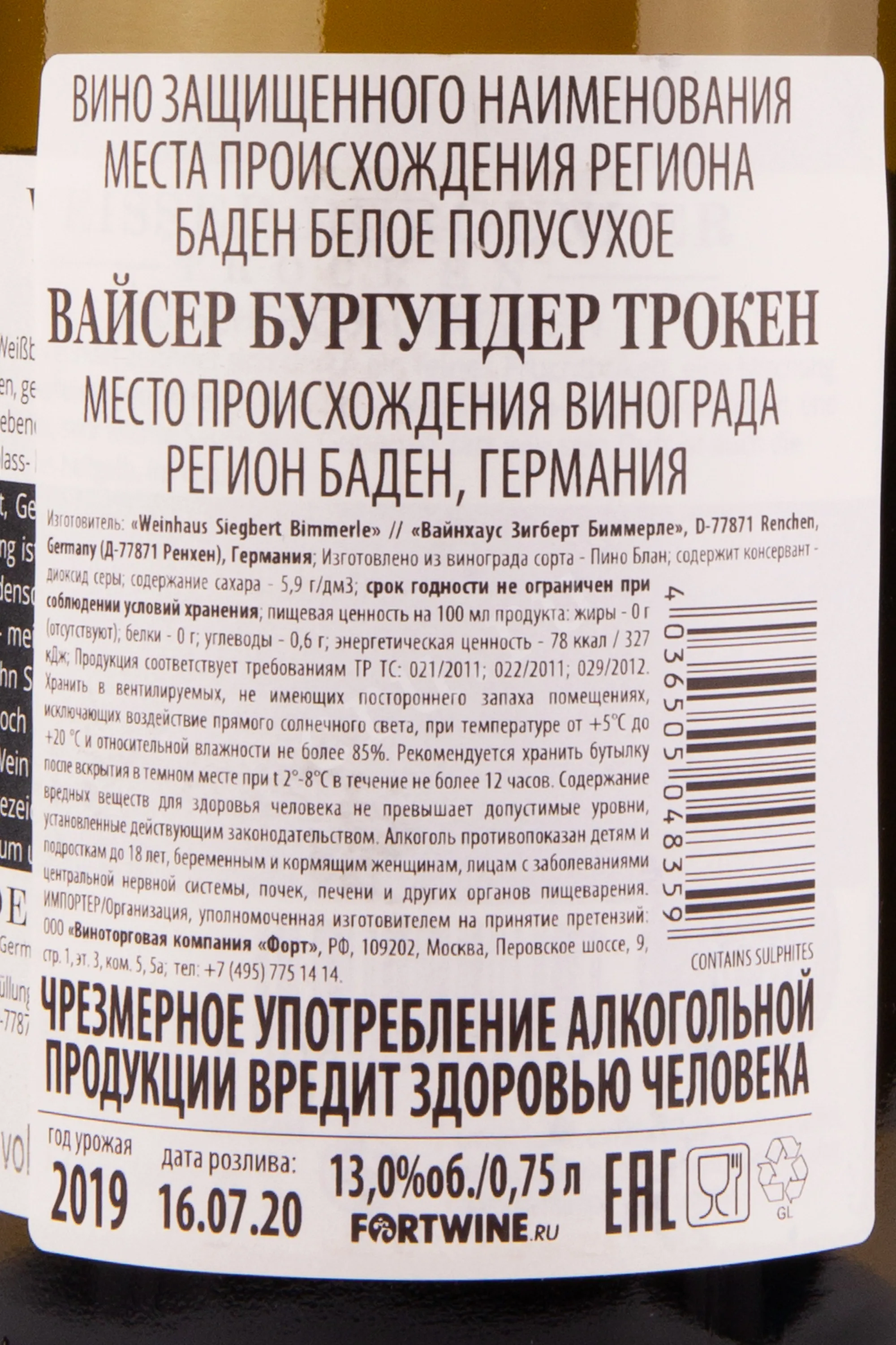 Weisser Burgunder Trocken 2019 0.75 л купить - Немецкое вино Вайсер Бургундер Трокен цена в магазинег. Москва, ул. Профсоюзная, д. 16/1010:00-22:00 Ежедневно+7 (495) 920-20-02info@cru.ru