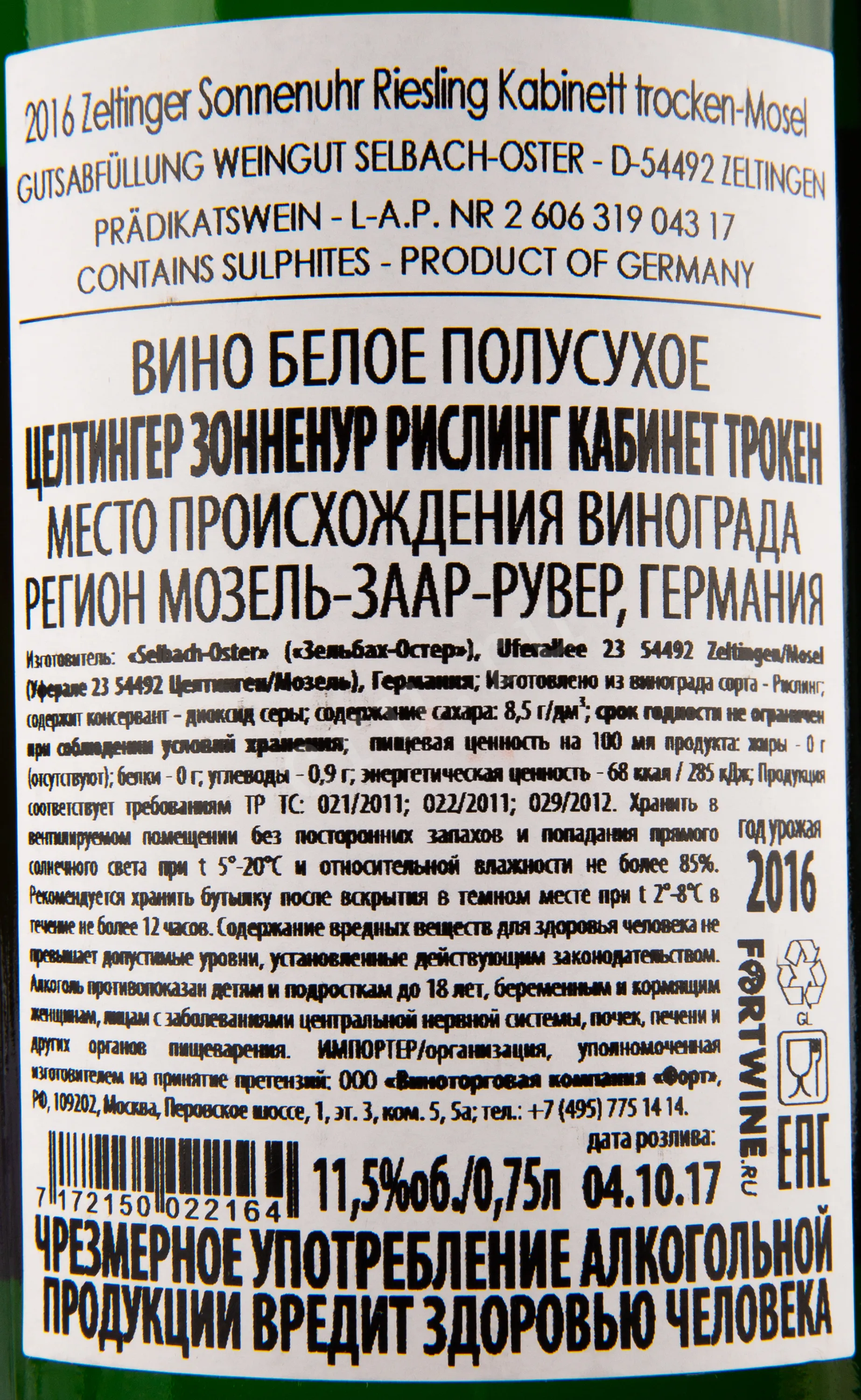 Zeltinger Sonnenuhr Riesling Kabinett Trocken 0.75 л купить - Немецкое вино Целтингер Зонненур Рислинг Кабинет Трокен цена в магазине г. Москва, ул. Профсоюзная, д. 16/10 10:00-22:00 Ежедневно +7 (495) 920-20-02 info@cru.ru