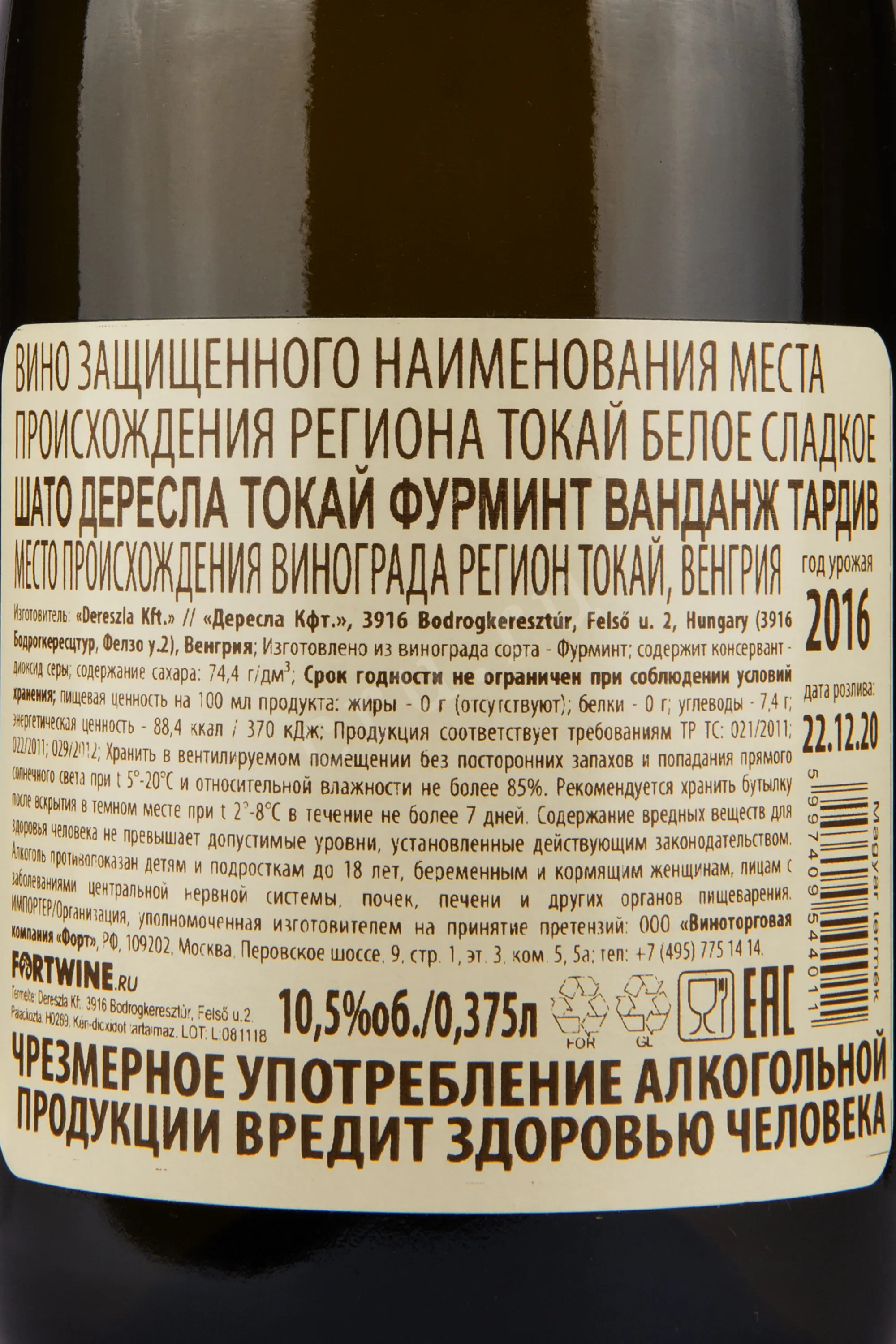 Шато Дересла Токай Фурминт Ванданж 2017 0.375
