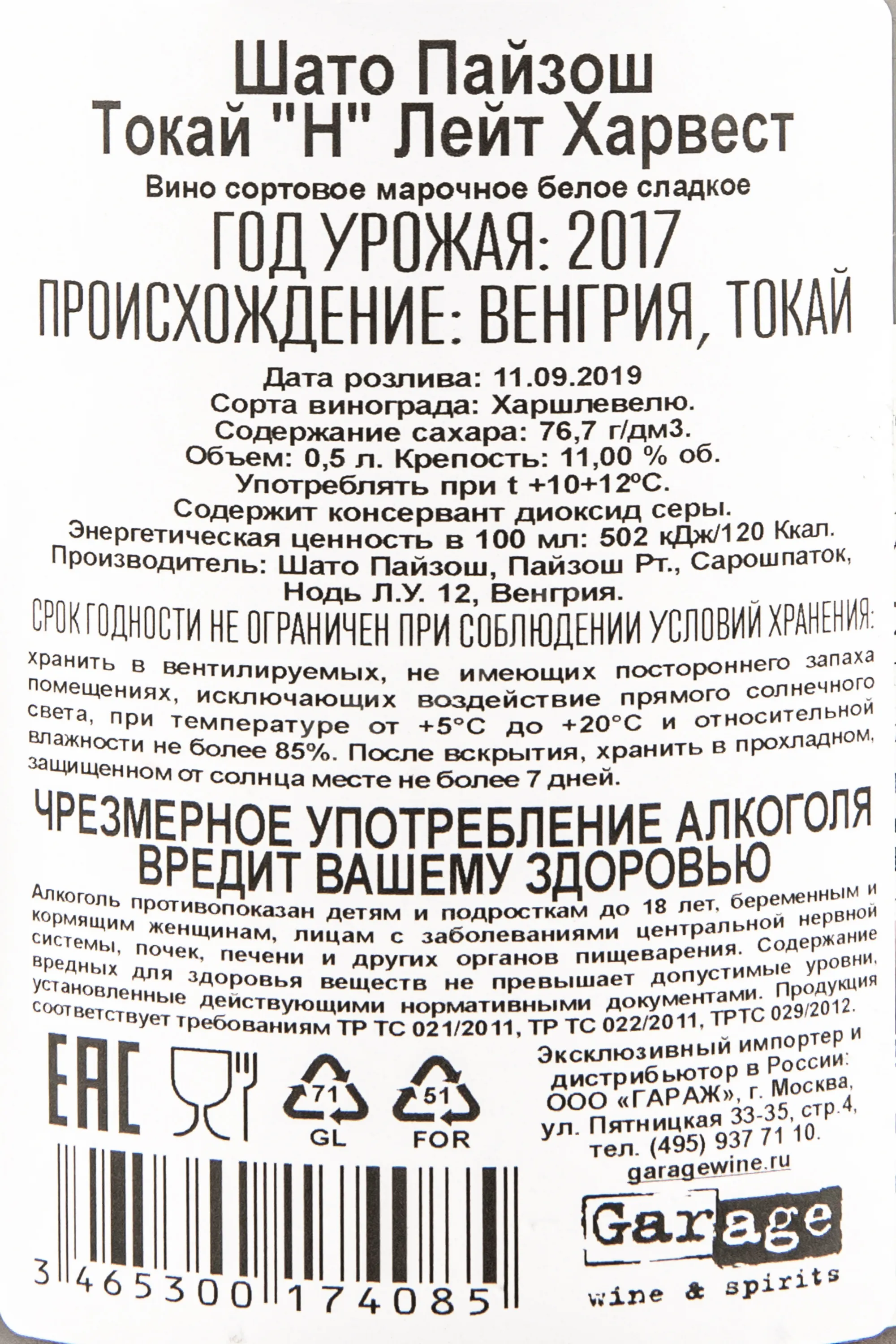 Белое сладкое вино Chateau Pajzos Tokaji "H" Late Harvest 2021 года 0.5 л производится в регионе Токай, отличается яркой минеральной основой и выразительной структурой. Виноград был выращен на собственных участках хозяйства Шато Пайзош с вулканическими почвами из андезитового туфа. Близость рек Бодрог и Тиса и влияние гор создают влажный микроклимат, благоприятный для развития благородной плесени Botrytis cinerea. Сбор урожая проводили вручную в ноябре. Подвяленный виноград после короткой мацерации мягко прессовали для получения концентрированного сусла. Брожение длилось около двух недель в стальных чанах при контролируемой температуре. Выдержка проходила шесть месяцев в резервуарах из нержавеющей стали. Перед розливом вино осветлили и фильтровали.
