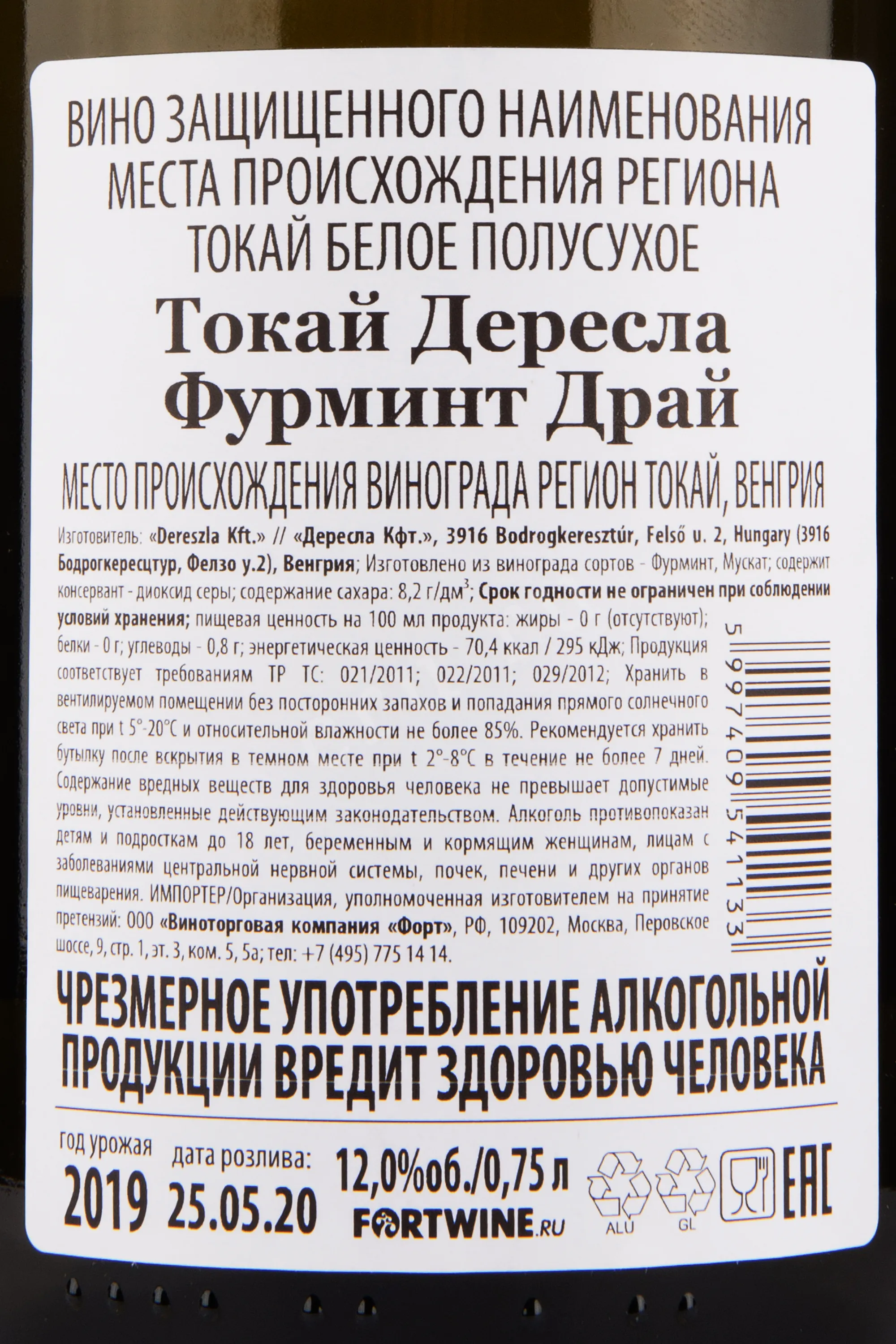Шато Дересла Токай Фурминт Драй 2022 0.75