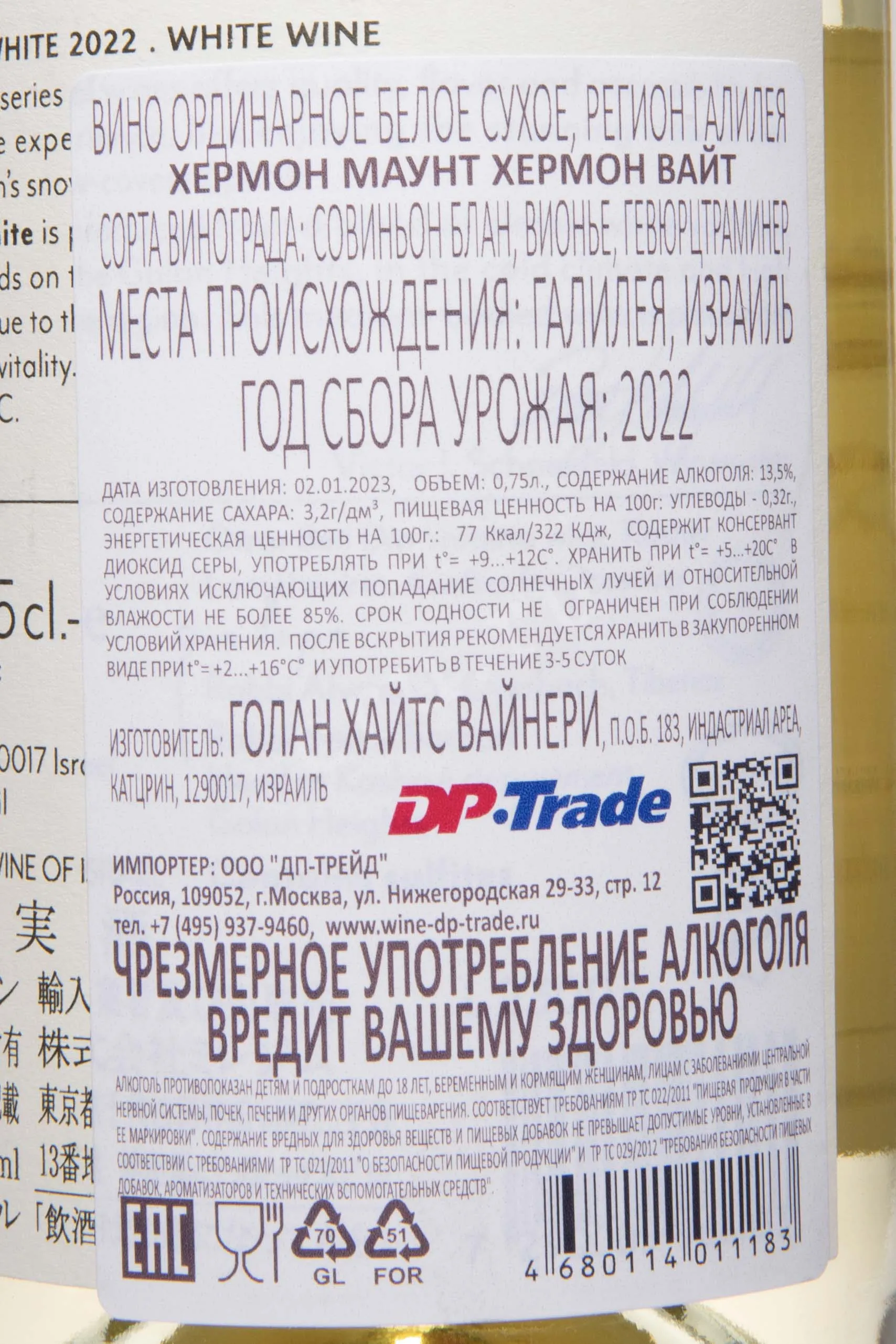 Белое сухое вино Hermon Mount White Galilee 2022 года 0,75 л — это яркий купаж, сочетающий свежесть и ароматическую насыщенность. Виноград выращен в прохладном высокогорном регионе Галилеи с вулканической и каменистой почвой. Перепады температур между днём и ночью помогают сохранить кислотность и выразительный букет. Вино проходит ферментацию при низкой температуре в стальных резервуарах, что позволяет сохранить фруктовые и цветочные ноты. Уникальность этого бленда обусловлена высоким качеством и местом происхождения. Она подтверждается положительными отзывами критиков, которые отмечают свежесть, гармонию и терруарный характер вина.