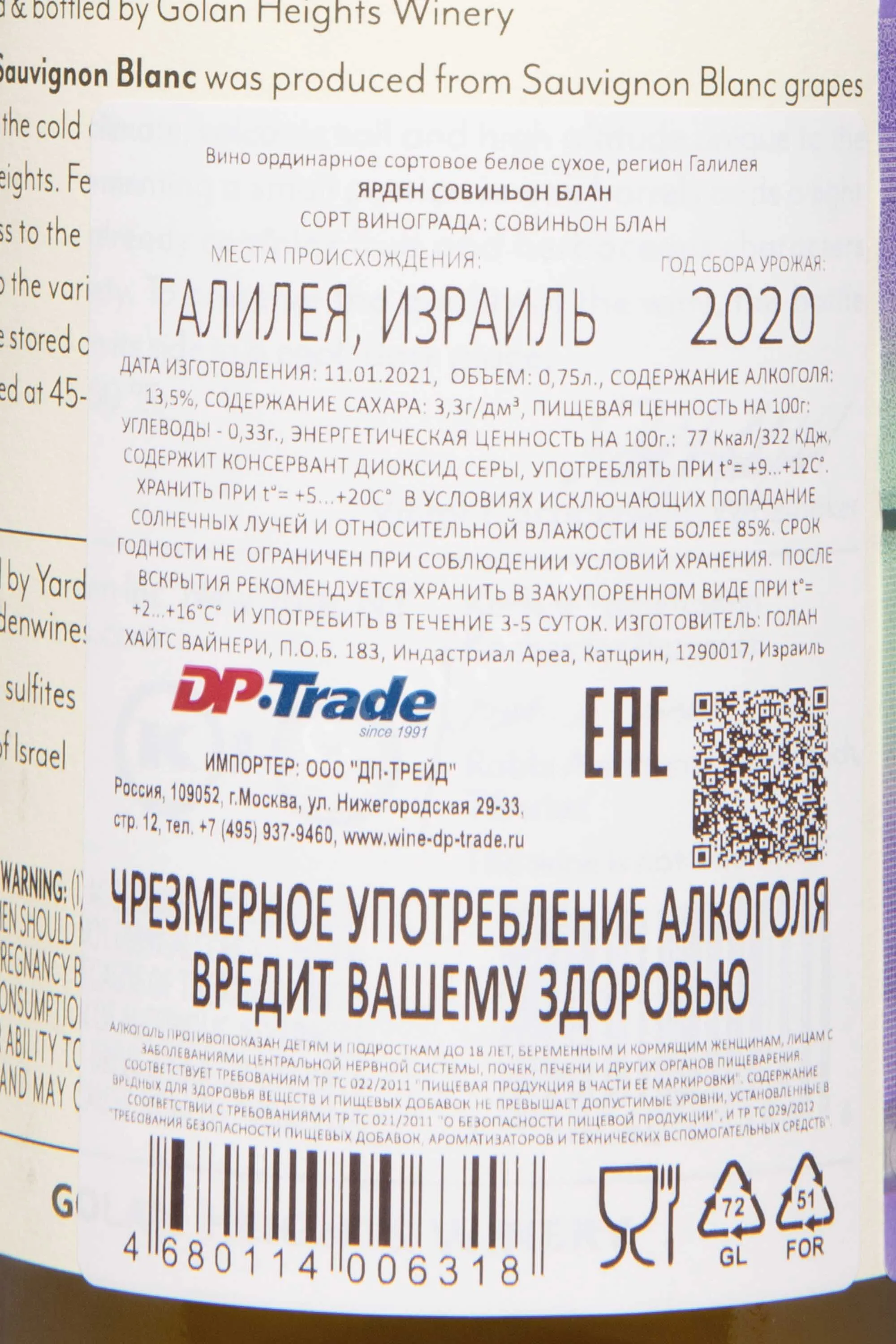 Ярден Совиньон Блан 2020 0.75