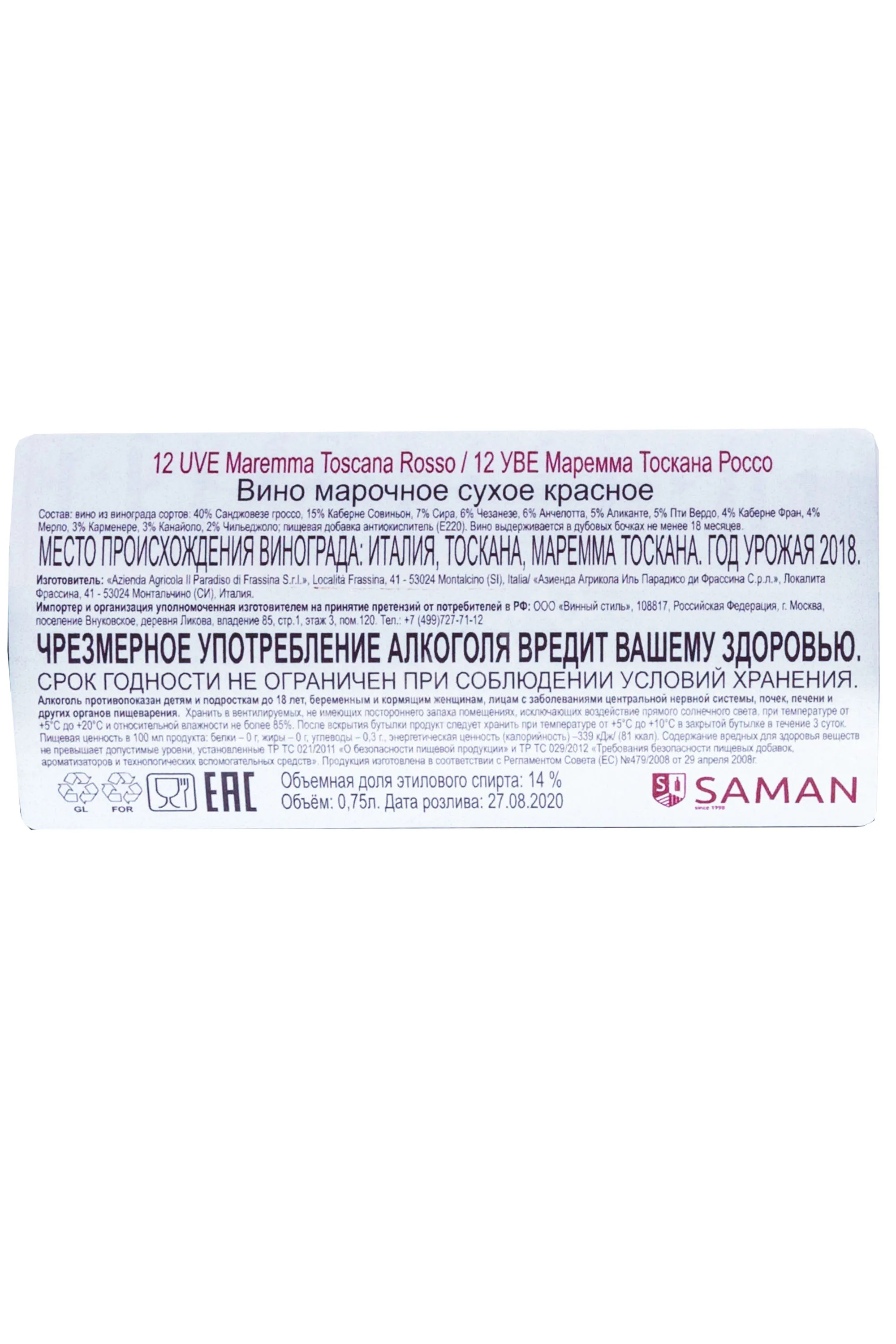 Изготовитель: Azienda Agricola il Paradiso di Frassina S.r.l