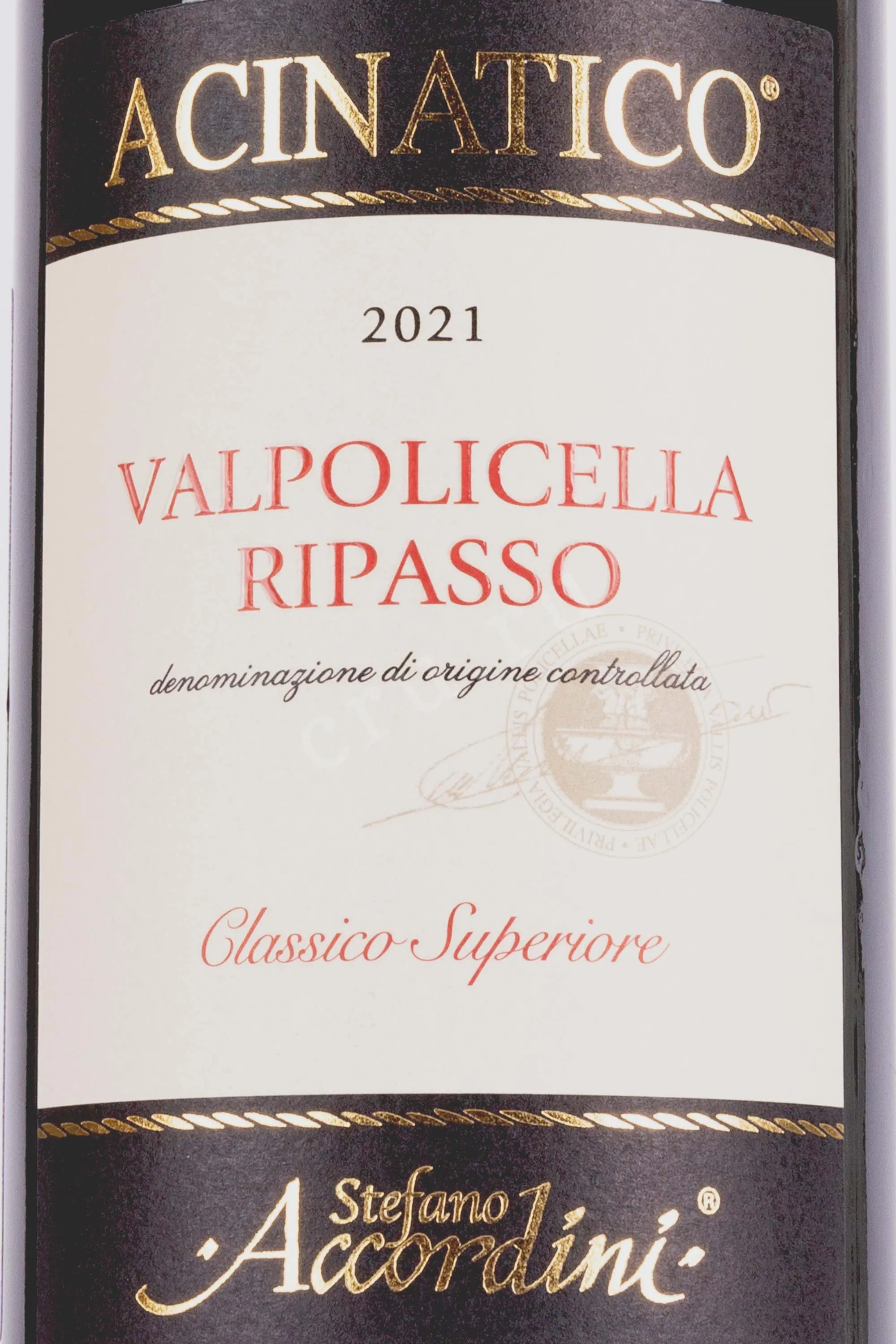 Acinatico Valpolicella Ripasso Classico Superiore 2021 0.75 л купить - Итальянское вино Ачинатико Вальполичелла Рипассо Классико Суперьоре цена в магазине г. Москва, ул. Профсоюзная, д. 16/10 10:00-22:00 Ежедневно +7 (495) 920-20-02 info@cru.ru