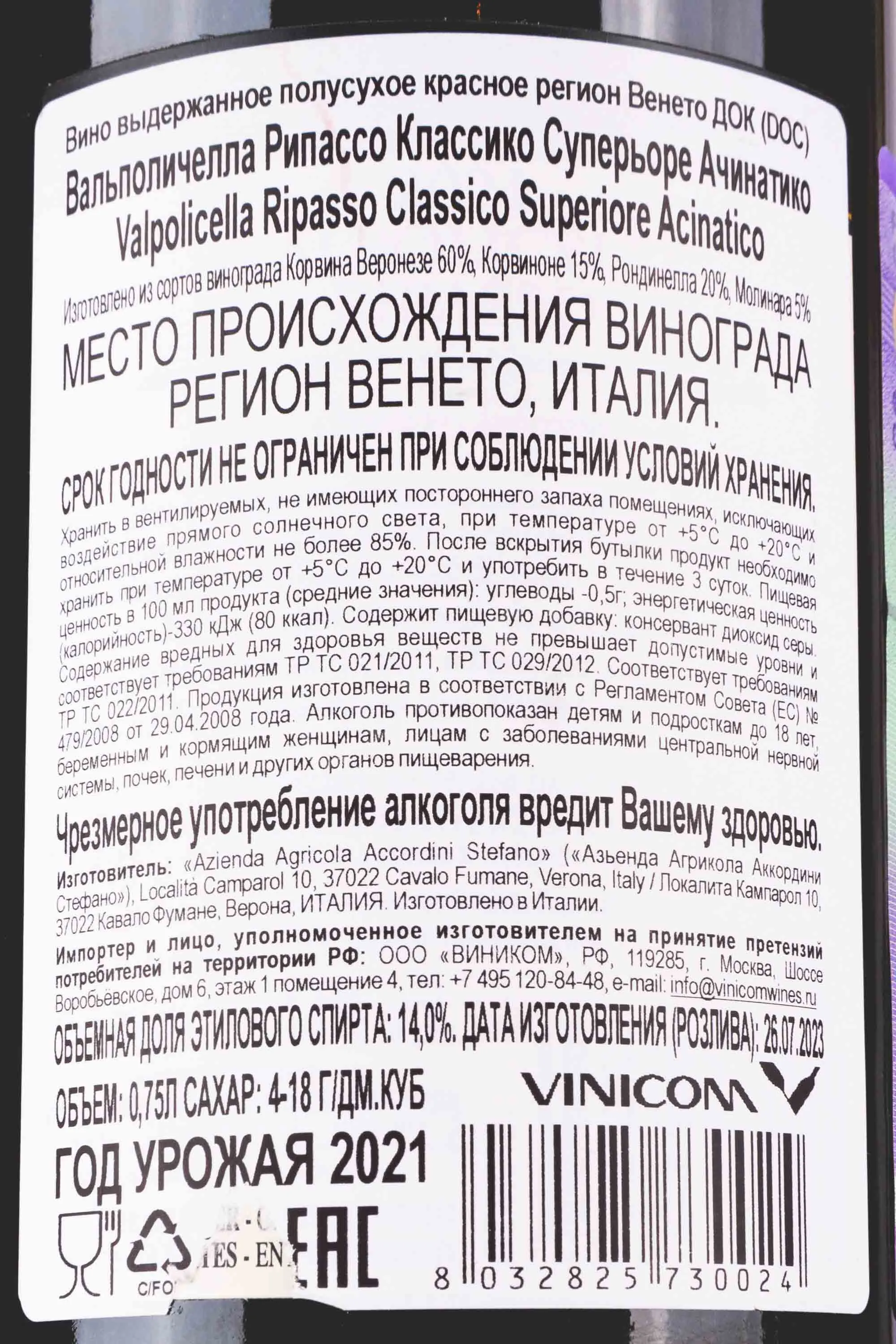 Ачинатико Вальполичелла Рипассо Классико Суперьоре 2021 0.75