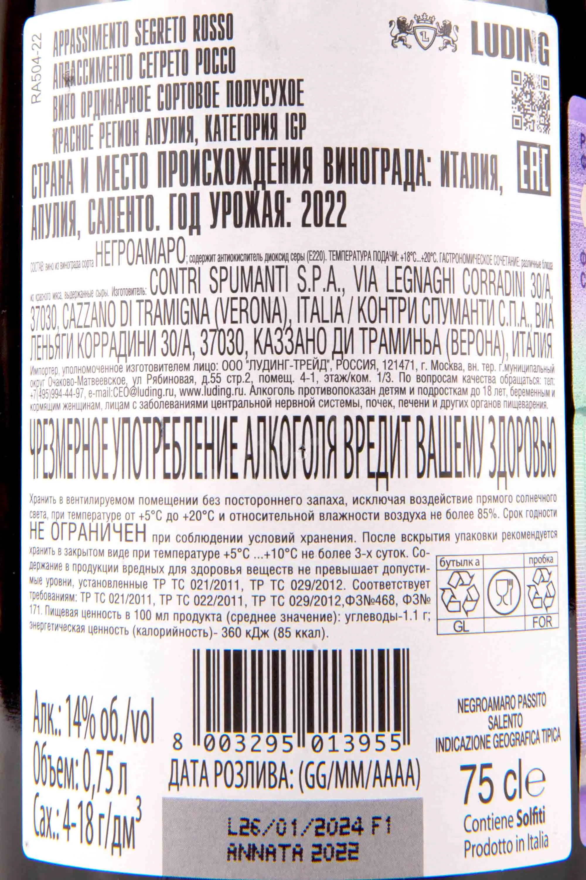 Вино Contessa Carola Il Mio Appassimento Segreto Rosso 2020 0.75 л