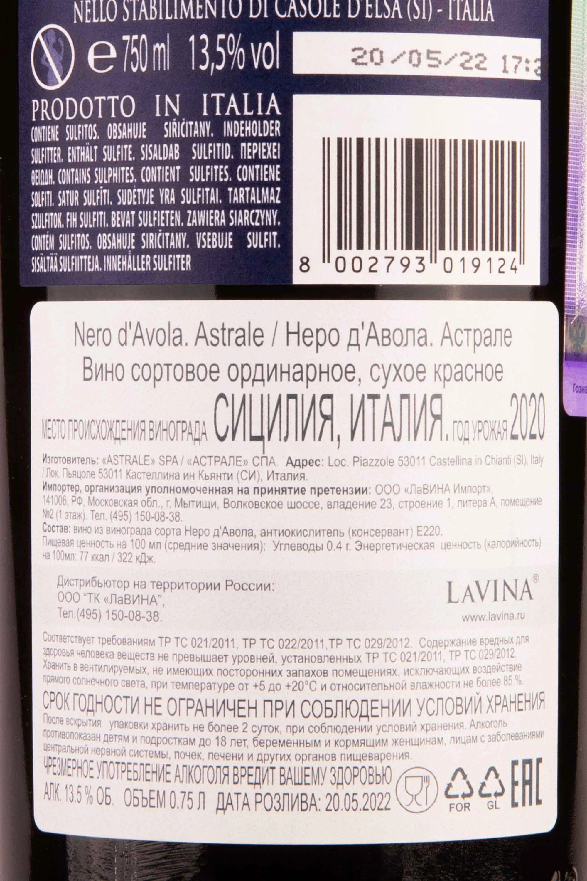 Astrale Nero d'Avola Sicilia 2023 0.75 л купить - Итальянское вино Астрале Неро д`Авола цена в магазине г. Москва, ул. Профсоюзная, д. 16/10 10:00-22:00 Ежедневно +7 (495) 920-20-02 info@cru.ru