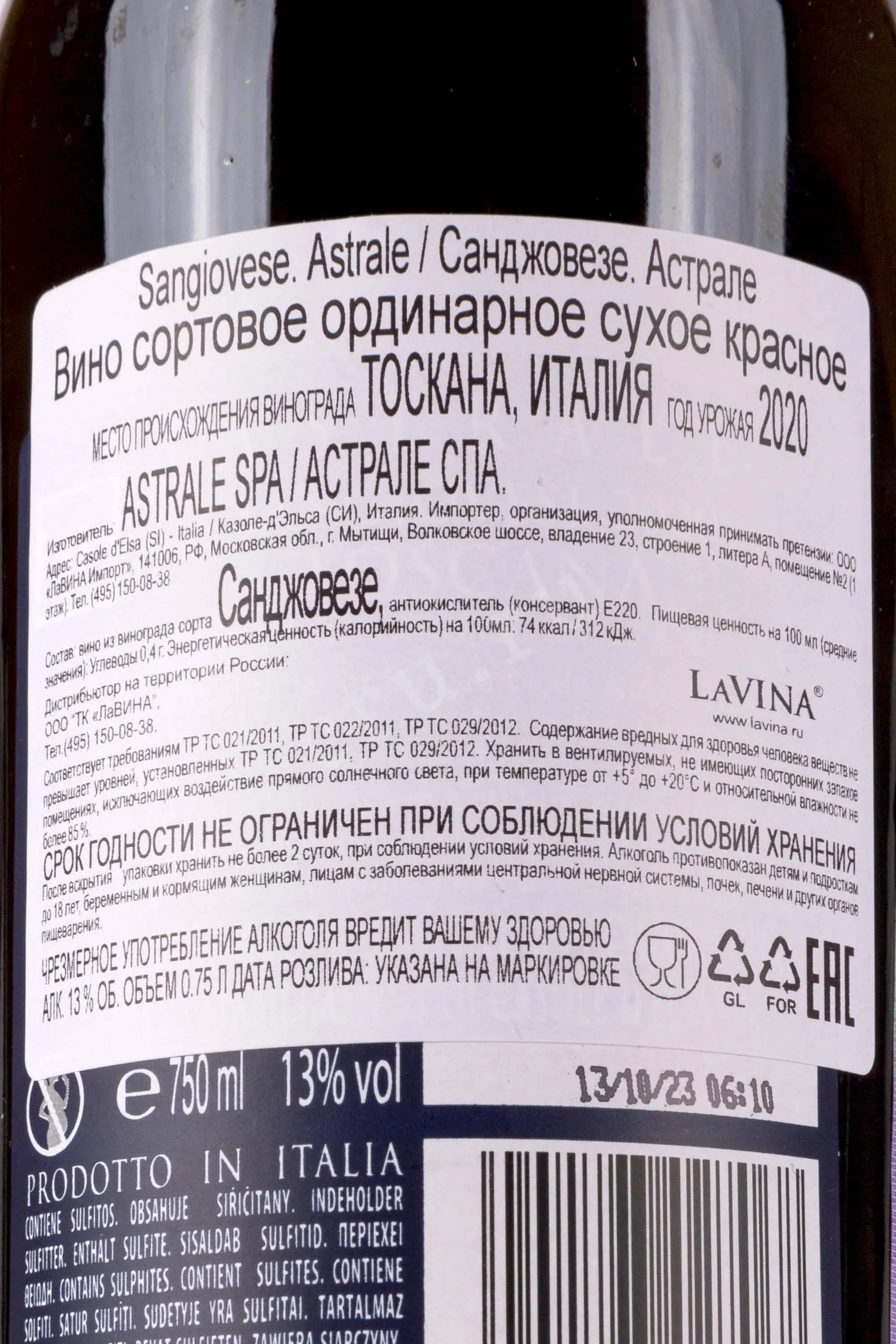 Astrale Sangiovese 2020 0.75 л купить - Итальянское вино Астрале Санджовезе цена в магазине г. Москва, ул. Профсоюзная, д. 16/10 10:00-22:00 Ежедневно +7 (495) 920-20-02 info@cru.ru