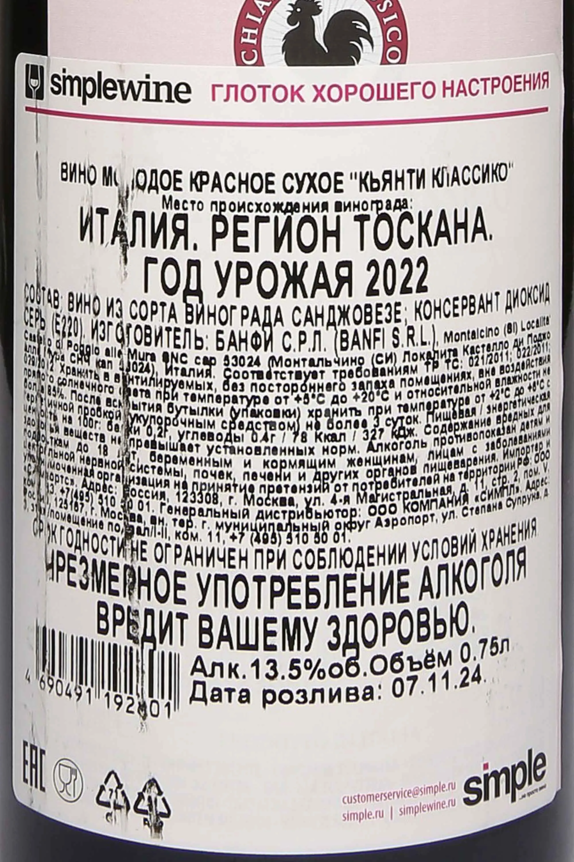 Banfi Chianti Classico DOCG 2022 0.75 л купить - Итальянское вино Банфи Кьянти Классико ДОКГ цена в магазине г. Москва, ул. Профсоюзная, д. 16/10 10:00-22:00 Ежедневно +7 (495) 920-20-02 info@cru.ru