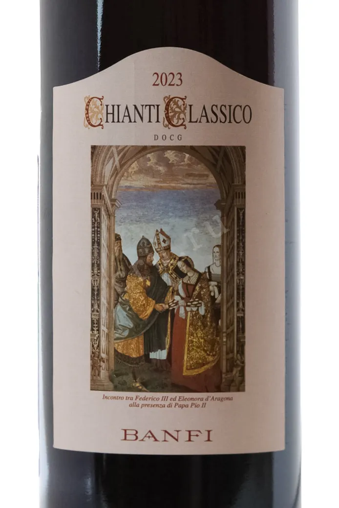 Вино Banfi Chianti Classico 2023 г. 0.75 l — это винтажный напиток крепостью 13.5 % от знаменитой одноименной итальянской компании, изготовленный из урожая 2019 года. Виноград произрастает в Кьянти Классико на известняковых почвах. Ягоды собирают вручную. Ферментация сусла длится от 8 до 10 дней, после чего красное сухое вино выдерживается в течение 3-х месяцев в бочках из славонского и французского дуба.