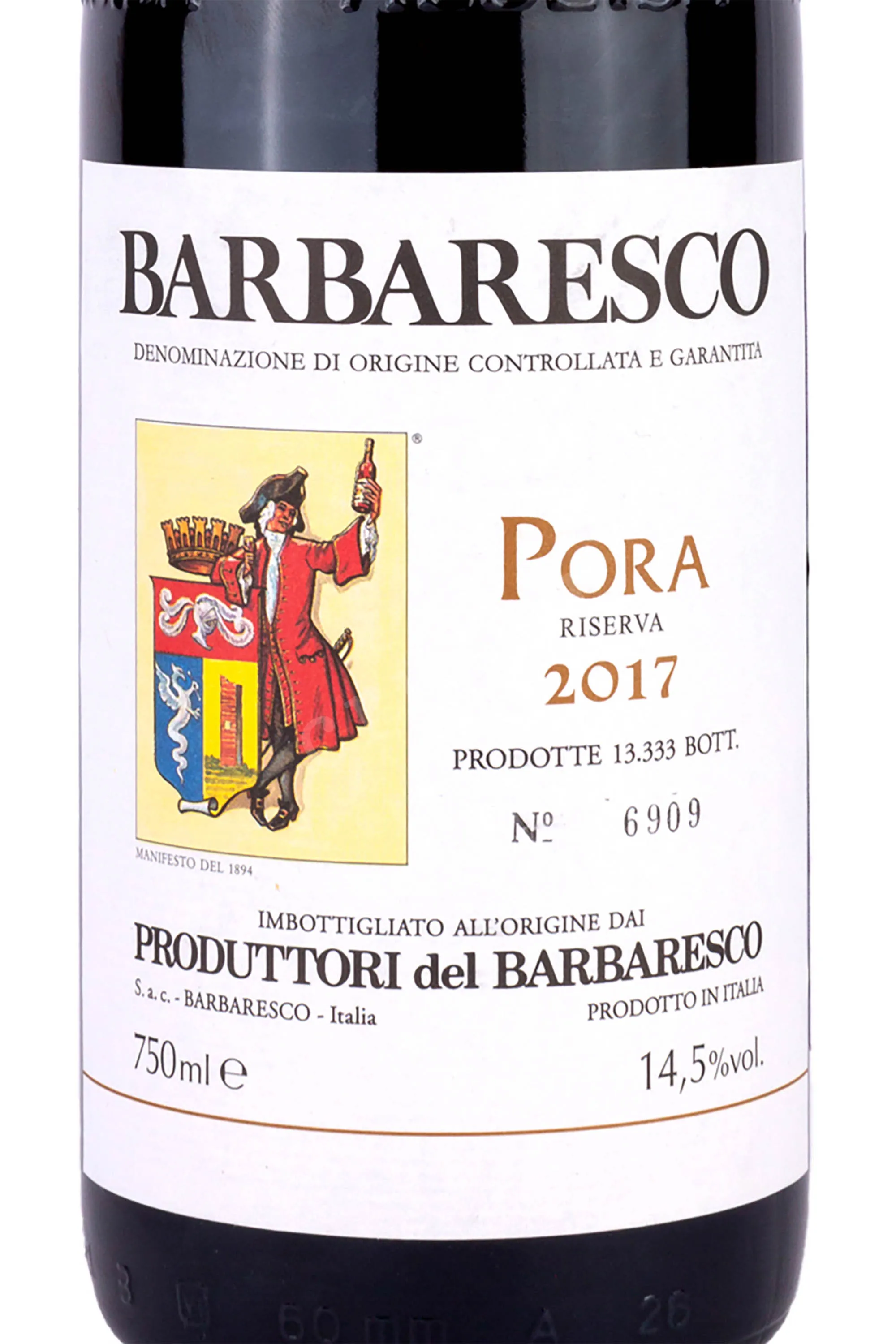 Вино Barbaresco Pora Riserva Produttori del Barbaresco 2017, изготовлено из винограда Неббиоло, урожая 2017 года, собранного вручную на винограднике Пора, расположенном в коммуне Барбареско, в регионе Пьемонт (Италия).