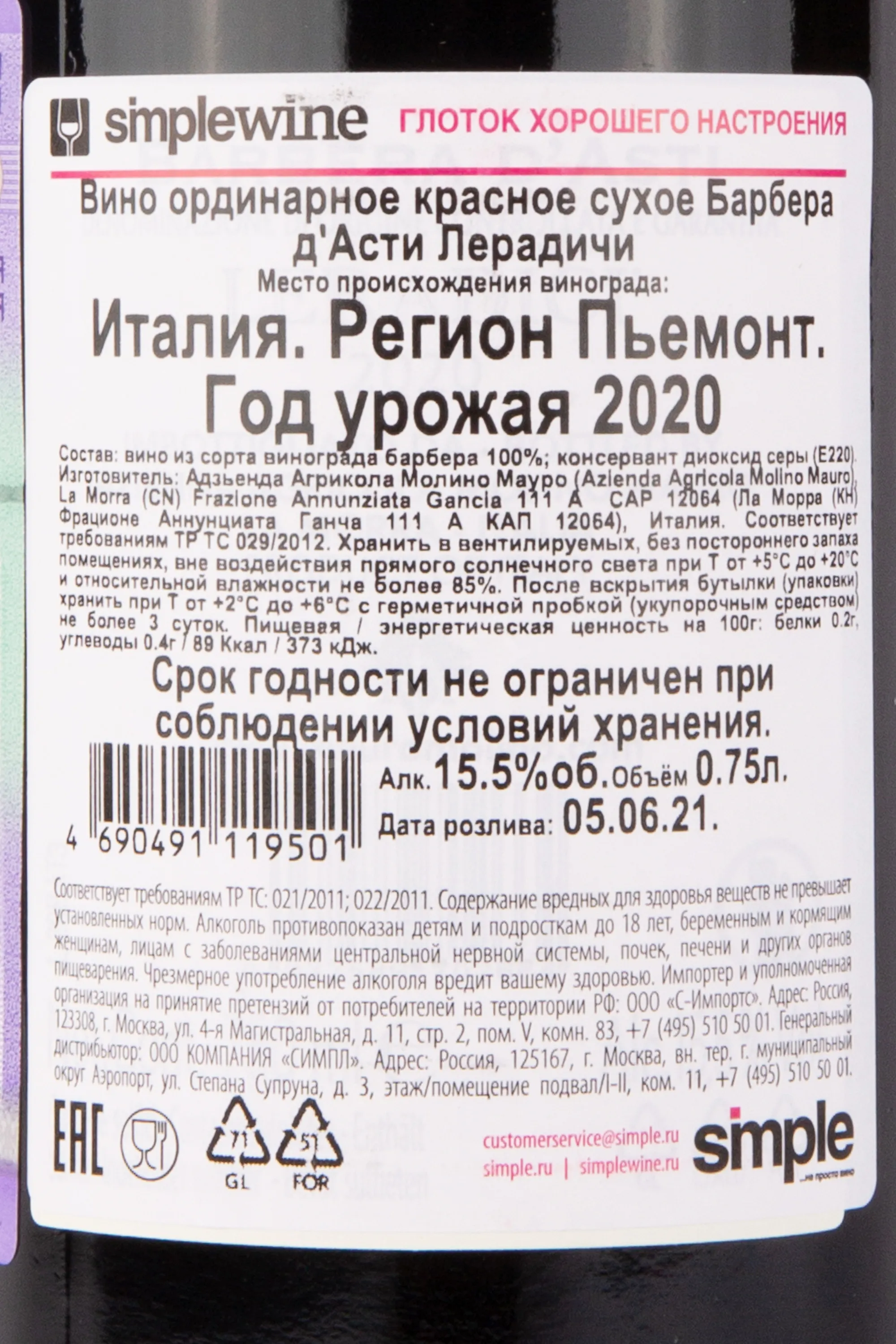 Barbera d’Asti Leradici 2020 0.75 л купить - Итальянское вино Барбера д'Асти Лерадичи цена в магазине г. Москва, ул. Профсоюзная, д. 16/10 10:00-22:00 Ежедневно +7 (495) 920-20-02 info@cru.ru