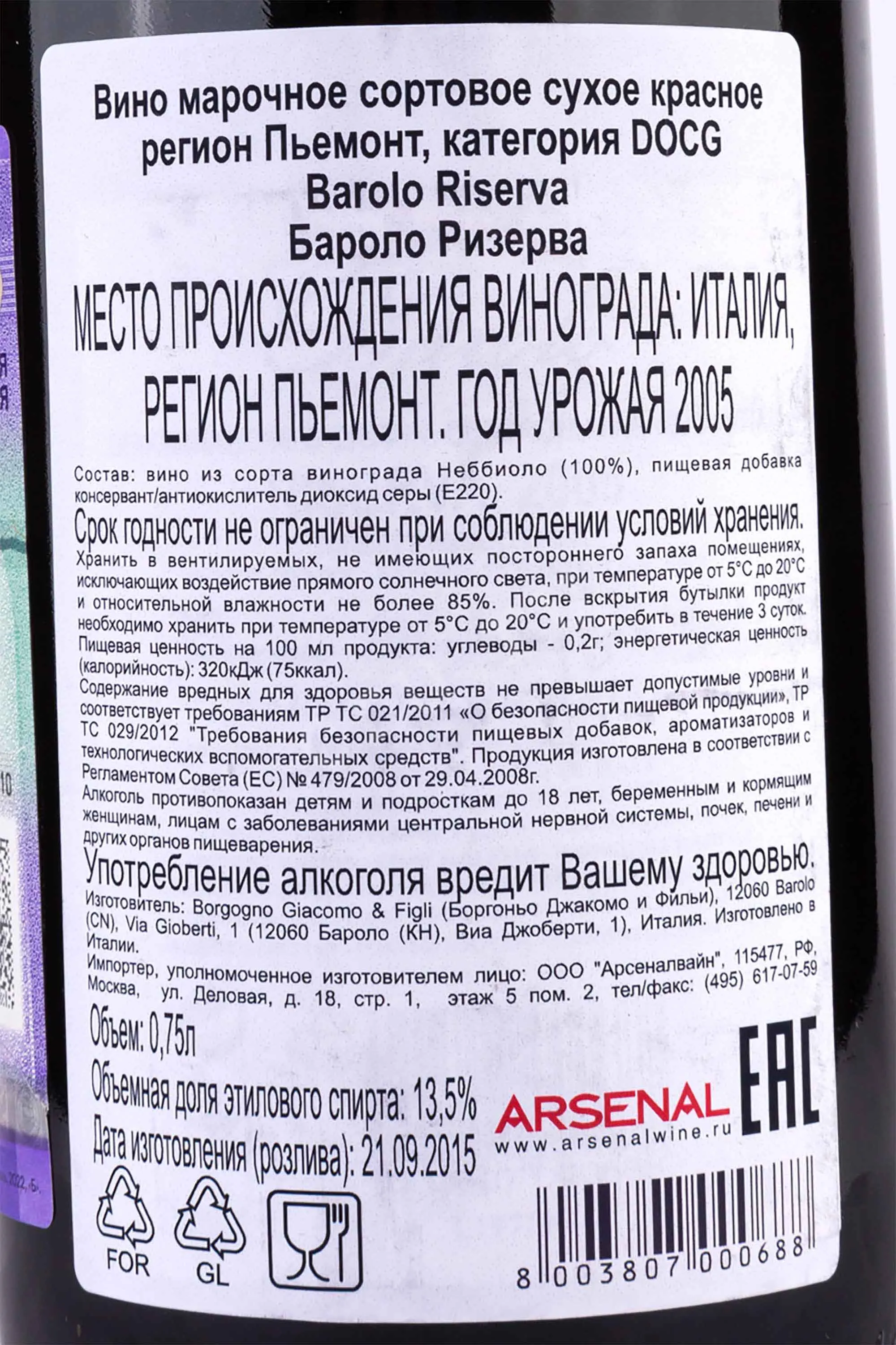 Вино Barolo Riserva Borgogno 2005 0.75 л