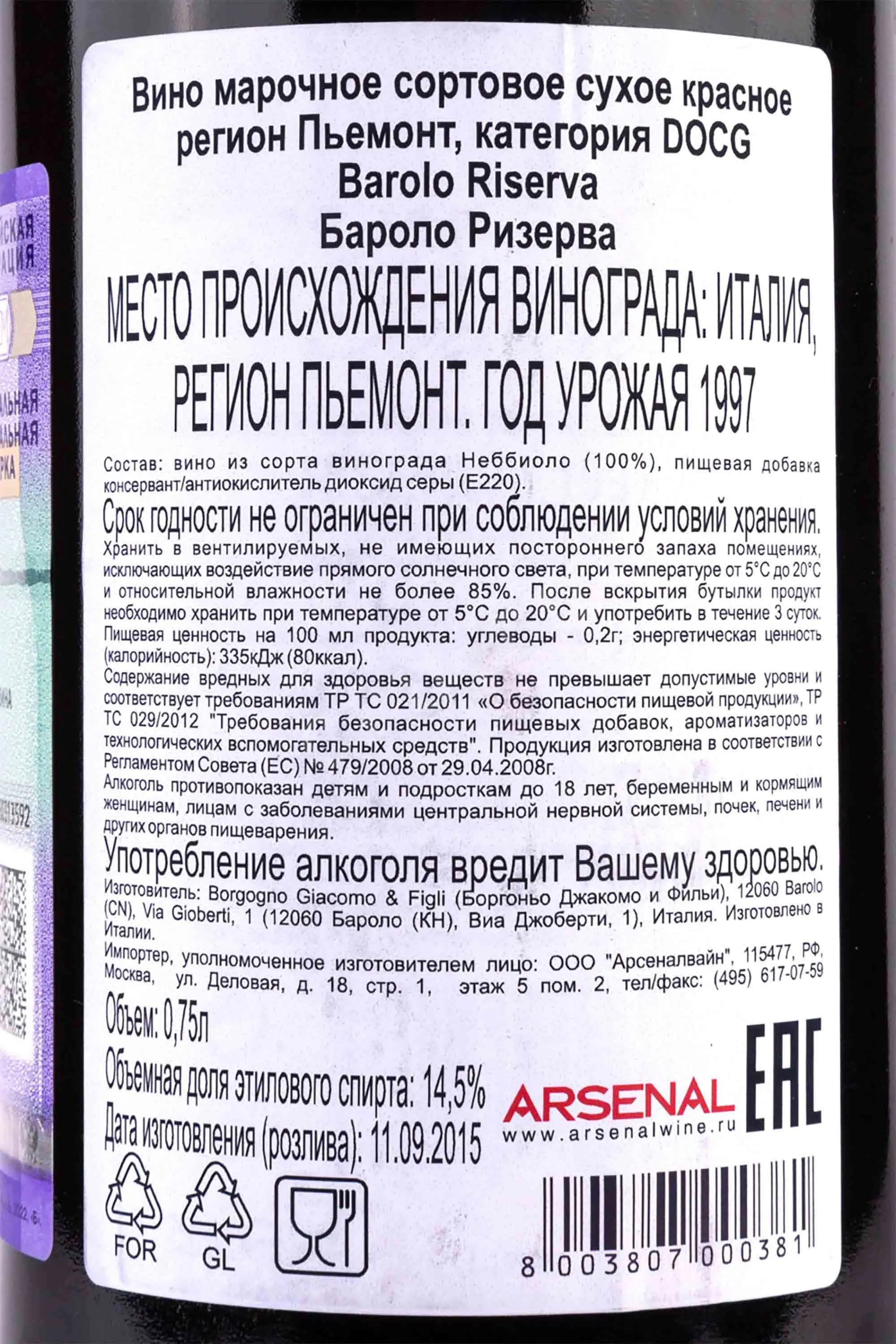Barolo Riserva Borgogno with gift box 1997 0.75 л купить - Италия 1997 года Бароло Ризерва Боргоньо в подарочной упаковке цена в магазине г. Москва, ул. Профсоюзная, д. 16/10 10:00-22:00 Ежедневно +7 (495) 920-20-02 info@cru.ru