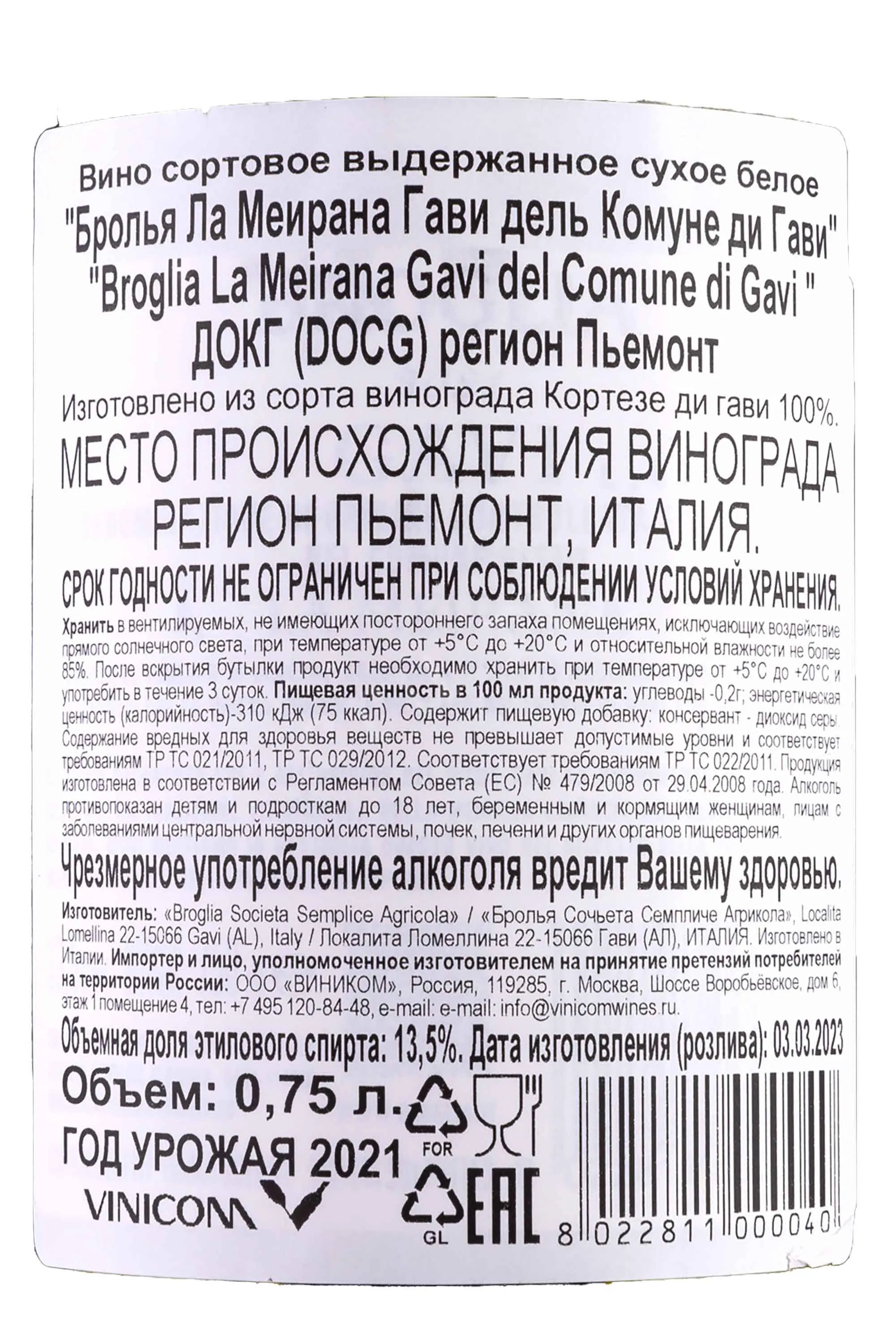Бролья Ла Меирана Гави дель Комуне ди Гави 2021 0.75